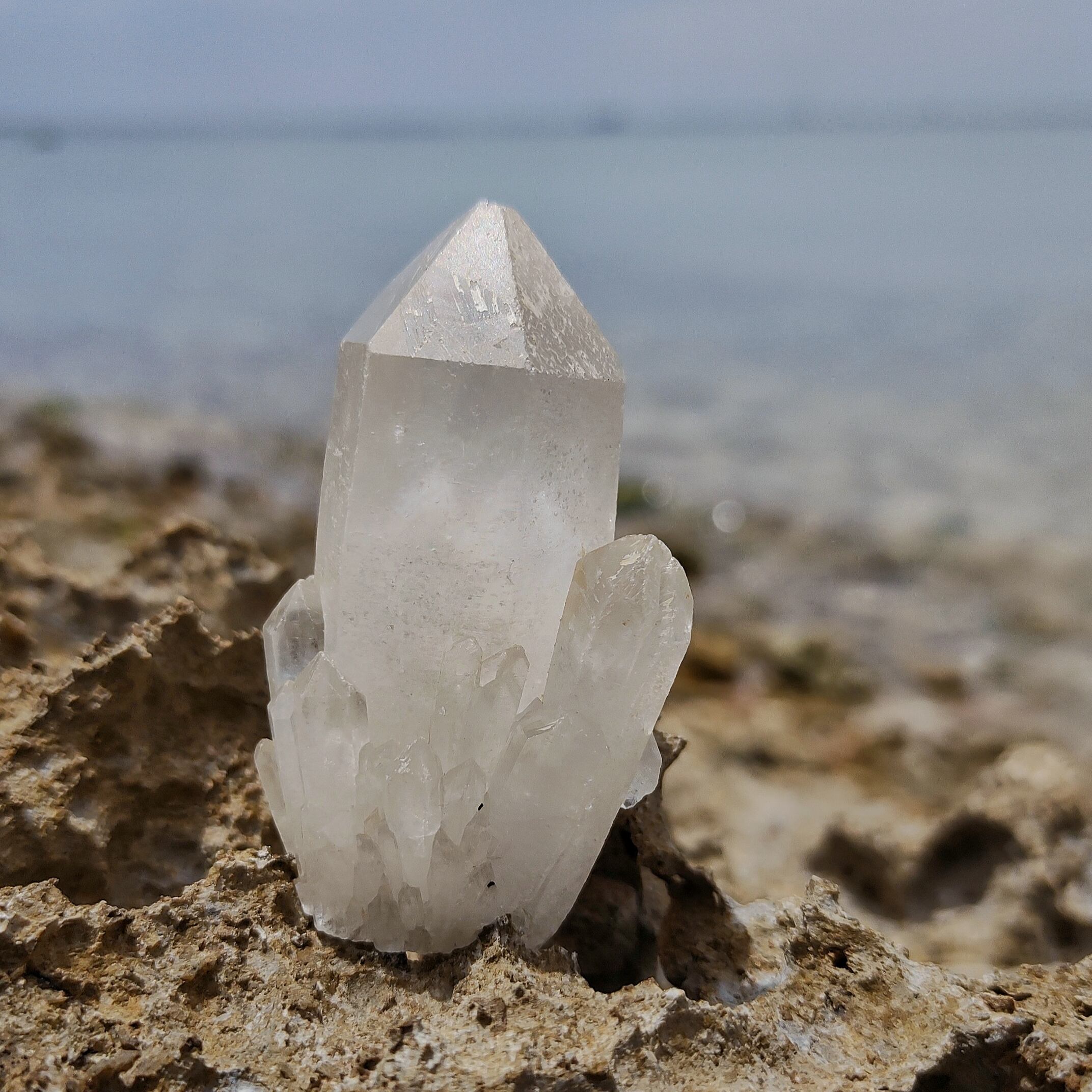 大変美しいクンダリーニクォーツになっております。1つ大きく、シングルポイントが立ってて、周りには小さな結晶が沢山群生している、クラスターを形成しています。唯一無二の風景を形成しています。あまりお目にかかれない逸品となっております。