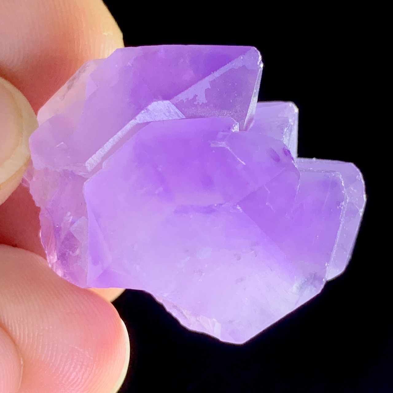 可愛いアメジスト クラスター。太陽の光に照らされて、キラキラした、パープルもピンクパープルになって、とても綺麗ですね。