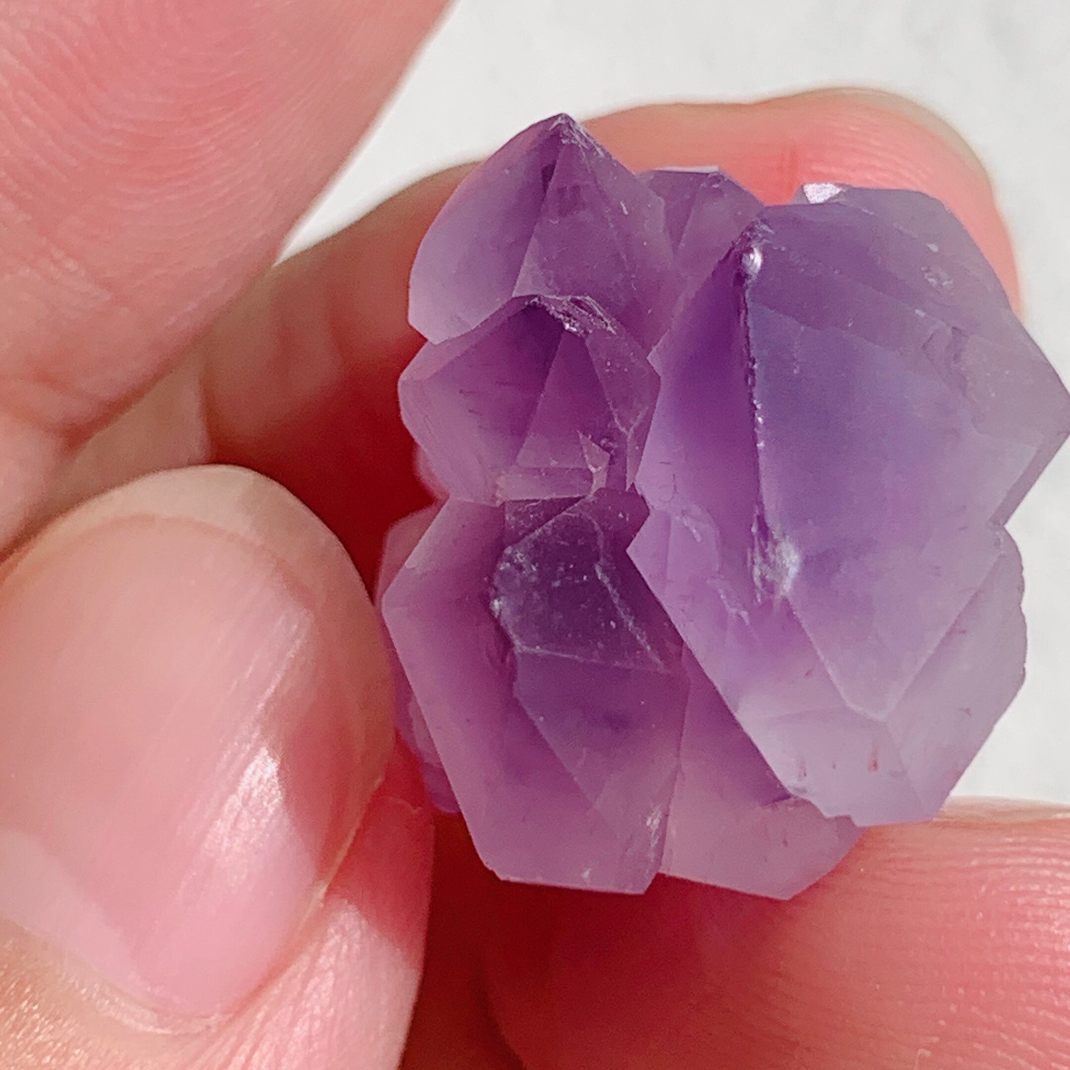 可愛いアメジスト クラスター。太陽の光に照らされて、キラキラした、パープルもピンクパープルになって、ダブルターミネーテッド(両剣水晶) ですので、とても珍しいですね。