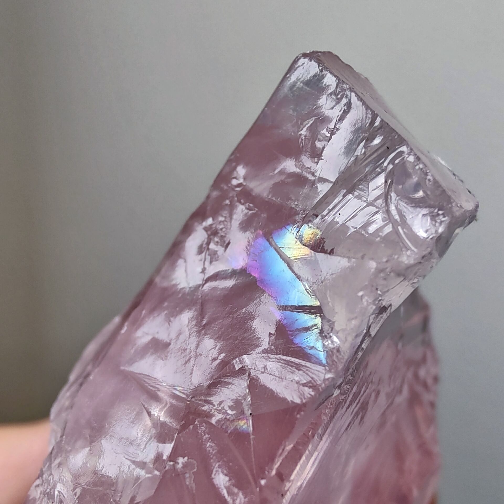 美しくやさしい輝きで透明感あふれるピンク色のローズクオーツで、女性に大人気のパワーストーンです。瑞々しい色合いと石から伝わる優しいエネルギー。内包物がなくて、透明度が高く手作りのゼリーの様な子。虹ともオーラフレイムともとれる輝きが美しい。内面からも美しく、優しくなれる石です。持ち歩いたり、握ってエネルギーを感じる。