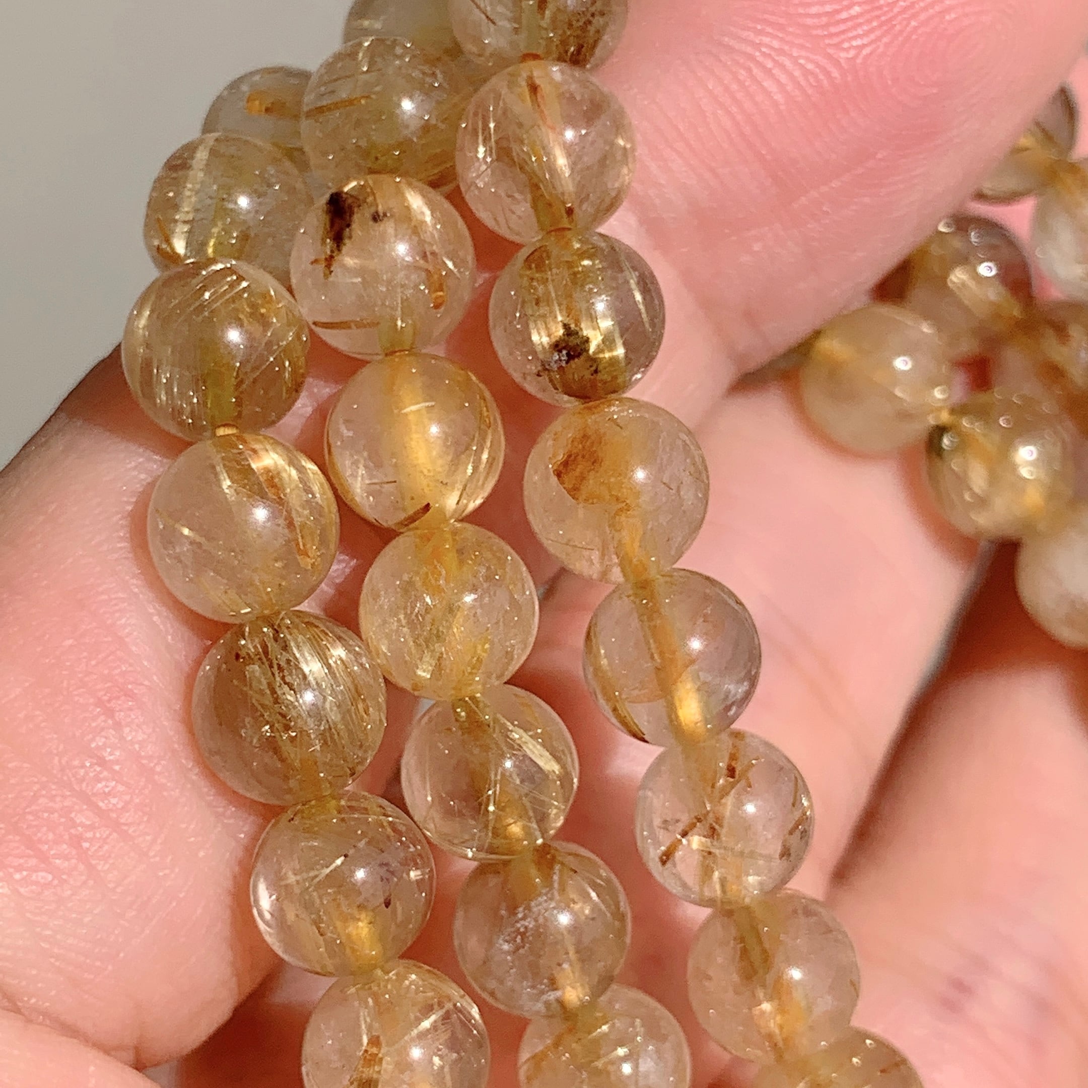 ◆再入荷◆金運アップ◆ タイチンゴールドルチルクォーツ K00184-5 6.8ミリ 3連 天然石ブレスレット パワーストーンブレスレット