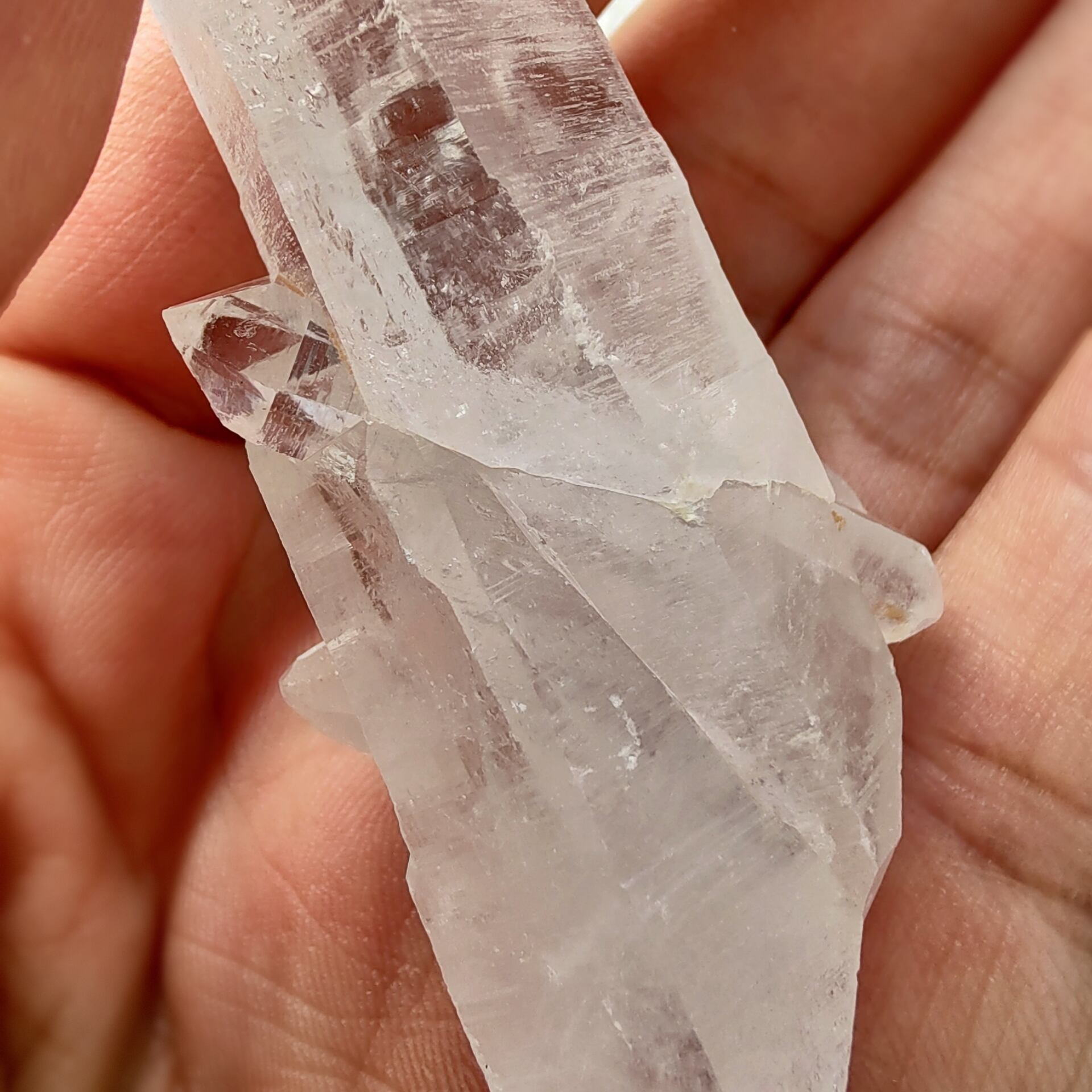 希少価値の高い照り艶良いレムリアンシードのクラスターです。錐面には一番大きな七角形があります。レシーバーと呼びます。氷のような美しさを纏い、横に刻まれた水晶の成長線であって、貫入水晶もあります、神聖な輝きを放ちます。小さい完全なダブルターミネーテッドがあって、とても綺麗です。