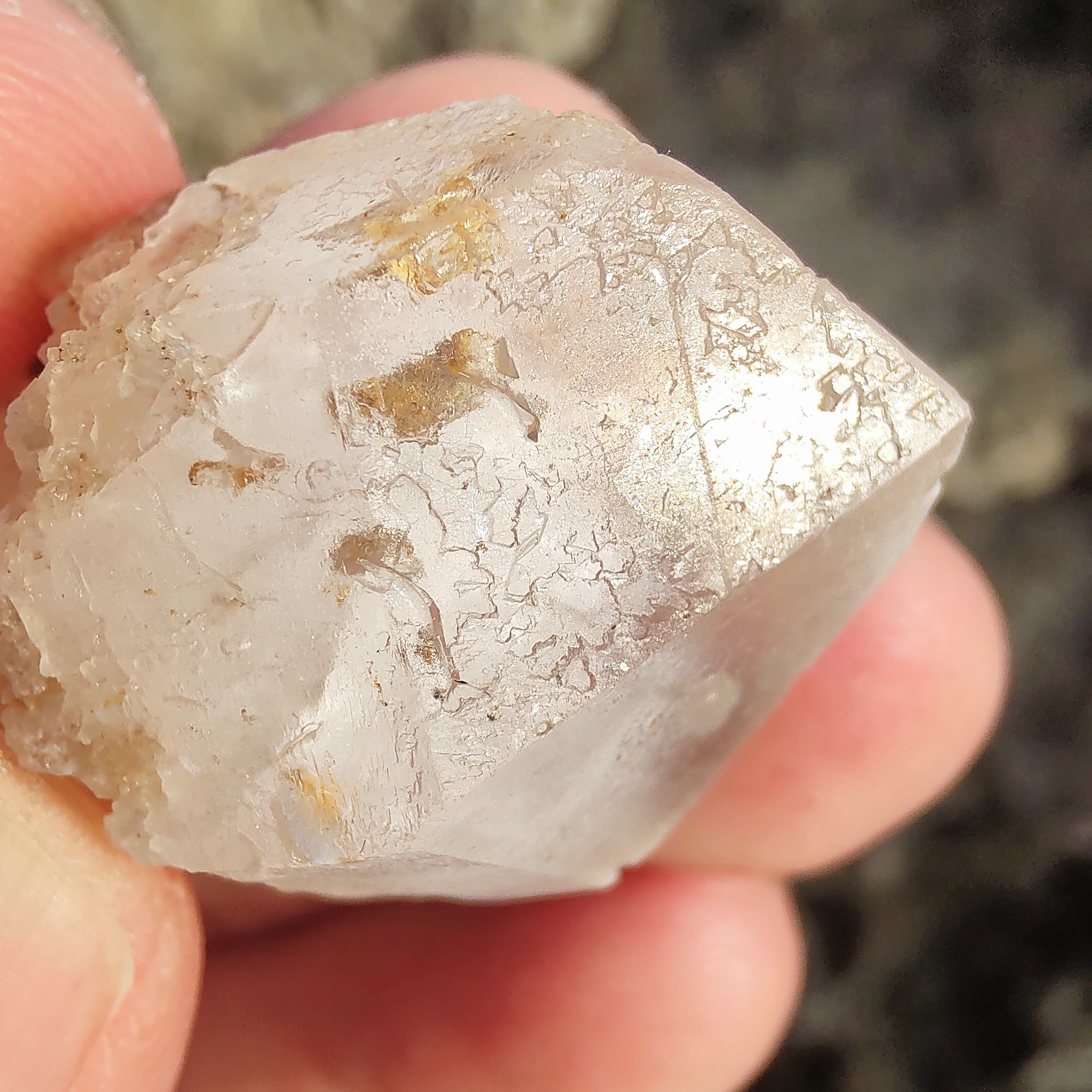 エッチドクォーツ(蝕像水晶)はクリスタルが成長過程で外部から何らかの干渉や影響を受け、表面がボコボコと変化したもの。クリスタル表が溶かされ丸みを帯びた、その独特な姿はとても個性的で、この蝕像に一目惚れしてしまいました。とても神秘的ですよね。