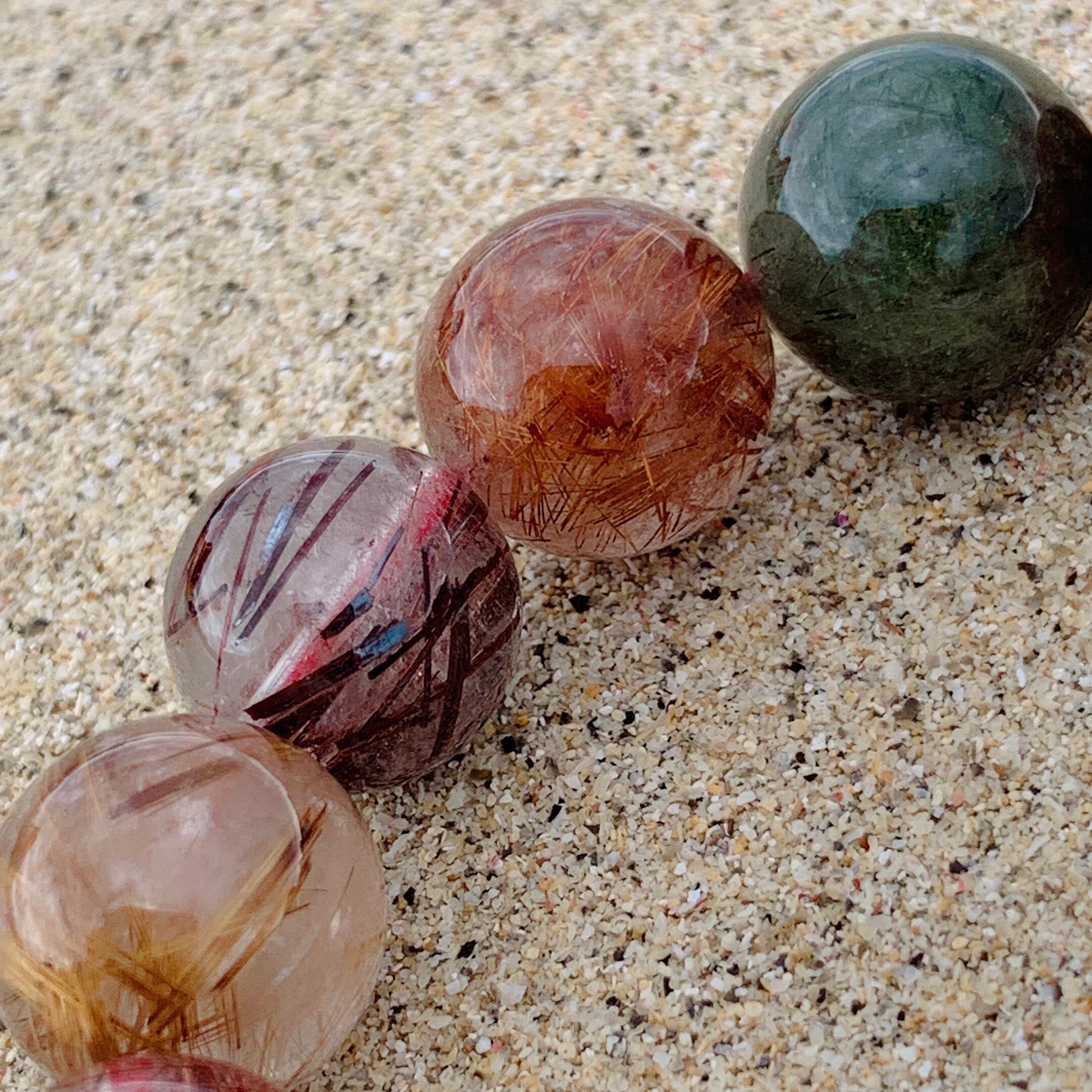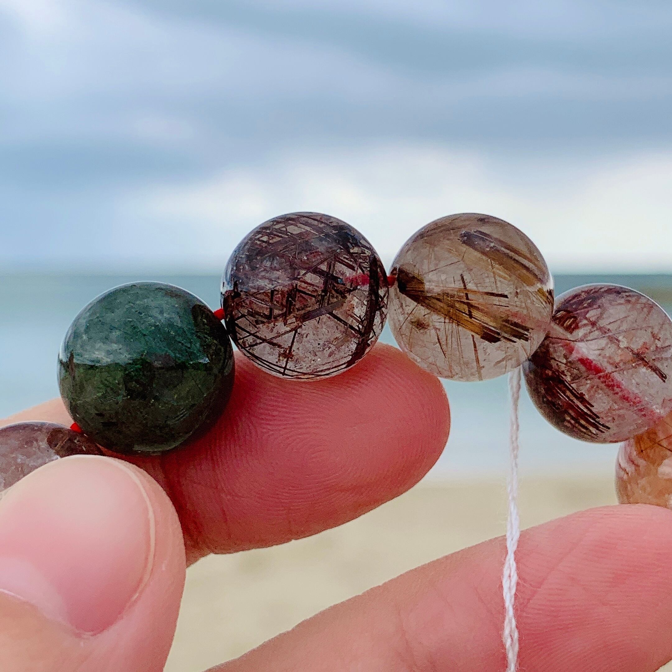 大玉のミックスルチルクォーツブレスレットです。13.8ミリ,微細な針と太い針がはっきり見させていて、玉に夫々特色があります。ブラウンルチルクォーツとグリーンルチルクォーツがありますので、特に金運アップしています。こちらブレスレットにはタイチンルチルクォーツもあって、優しい色合いで肌なじみも抜群です!