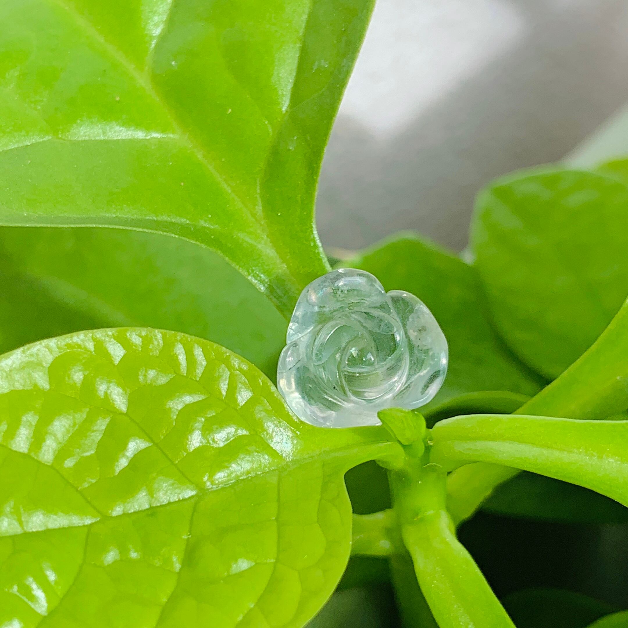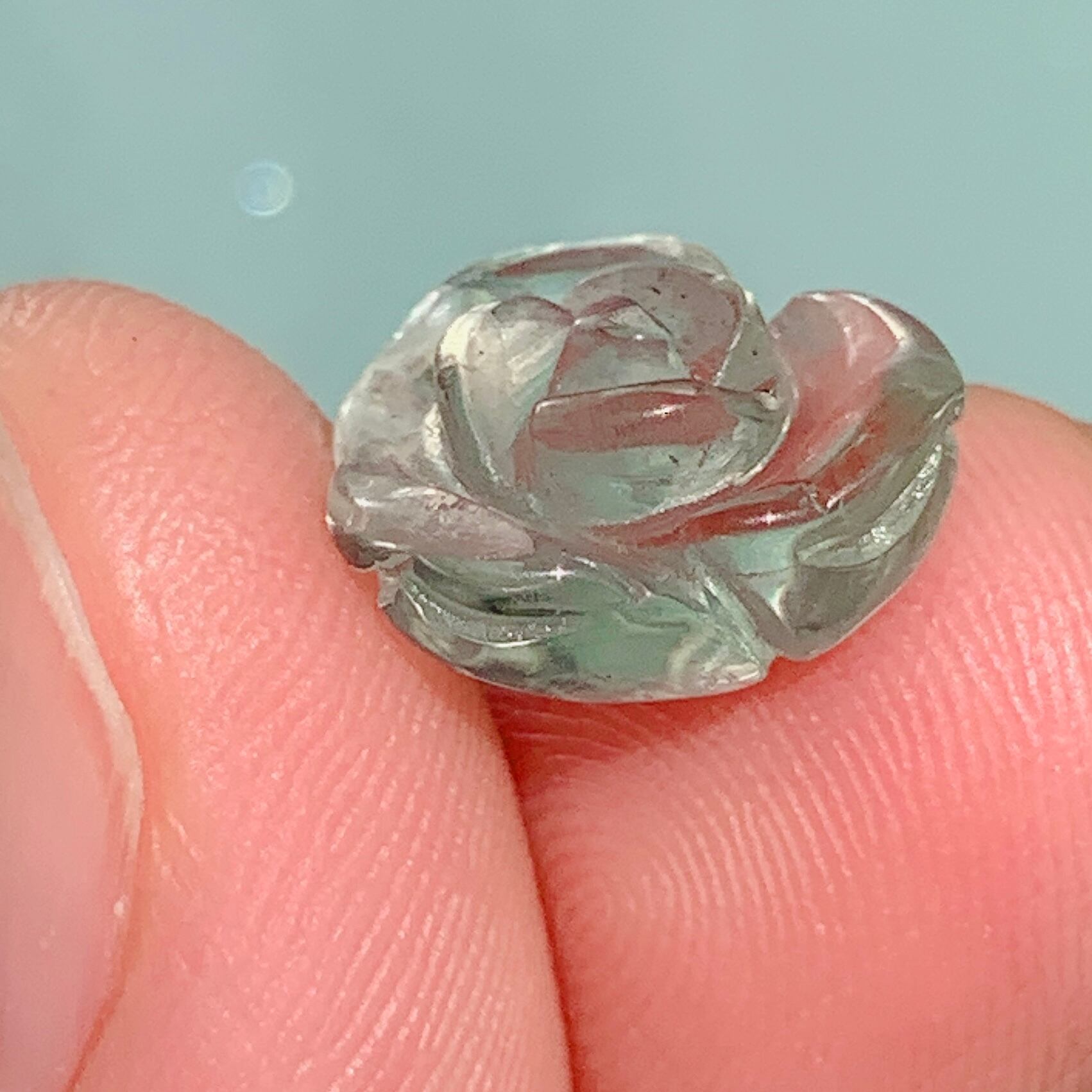タンザニア・アル―シャ産緑のアル―シャサンストーンで、今大人気の天然石です。宝石質で青く透明感抜群が入っていて知的な感じを醸し出してくれていって、エネルギーの非常に強いです。ローズの彫りが深く精巧で美しい逸品です。希少な珍しく美しい天然石です。小さいですが、2つは虹があって、色合いがらも非常に景色の良い標本です。