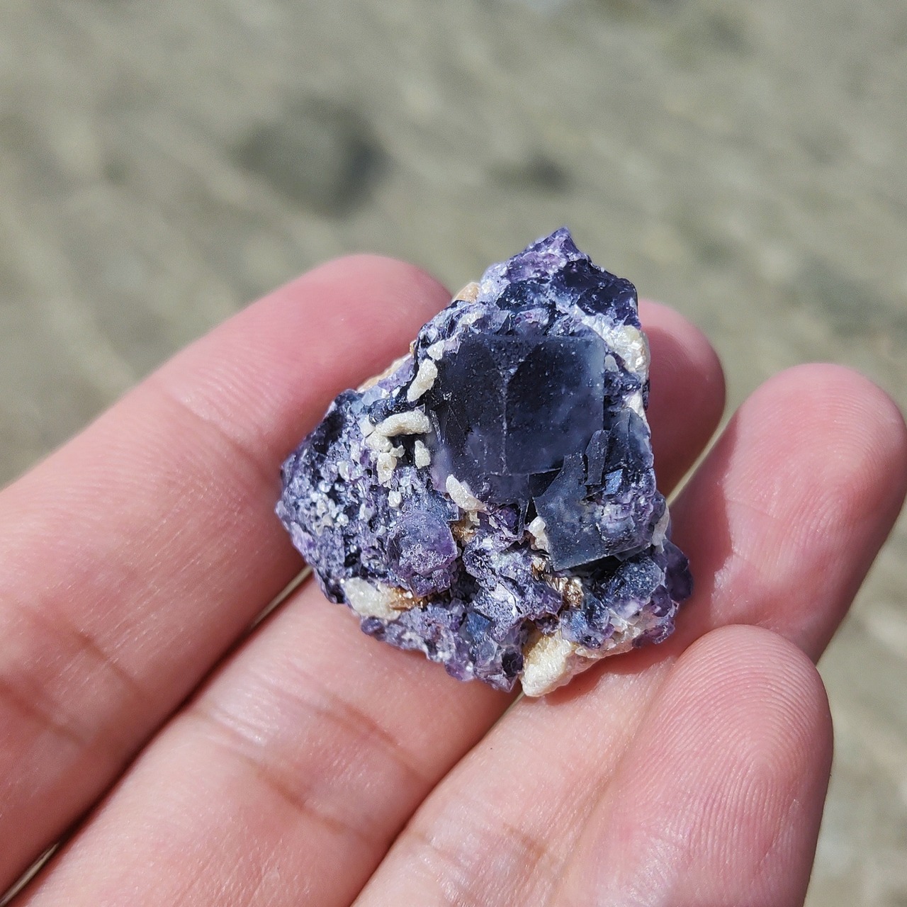 内モンゴル產フローライトとマイカ共生した鉱物標本です。濃厚なパープル、透明感とテリが共に非常に素晴らしいです。