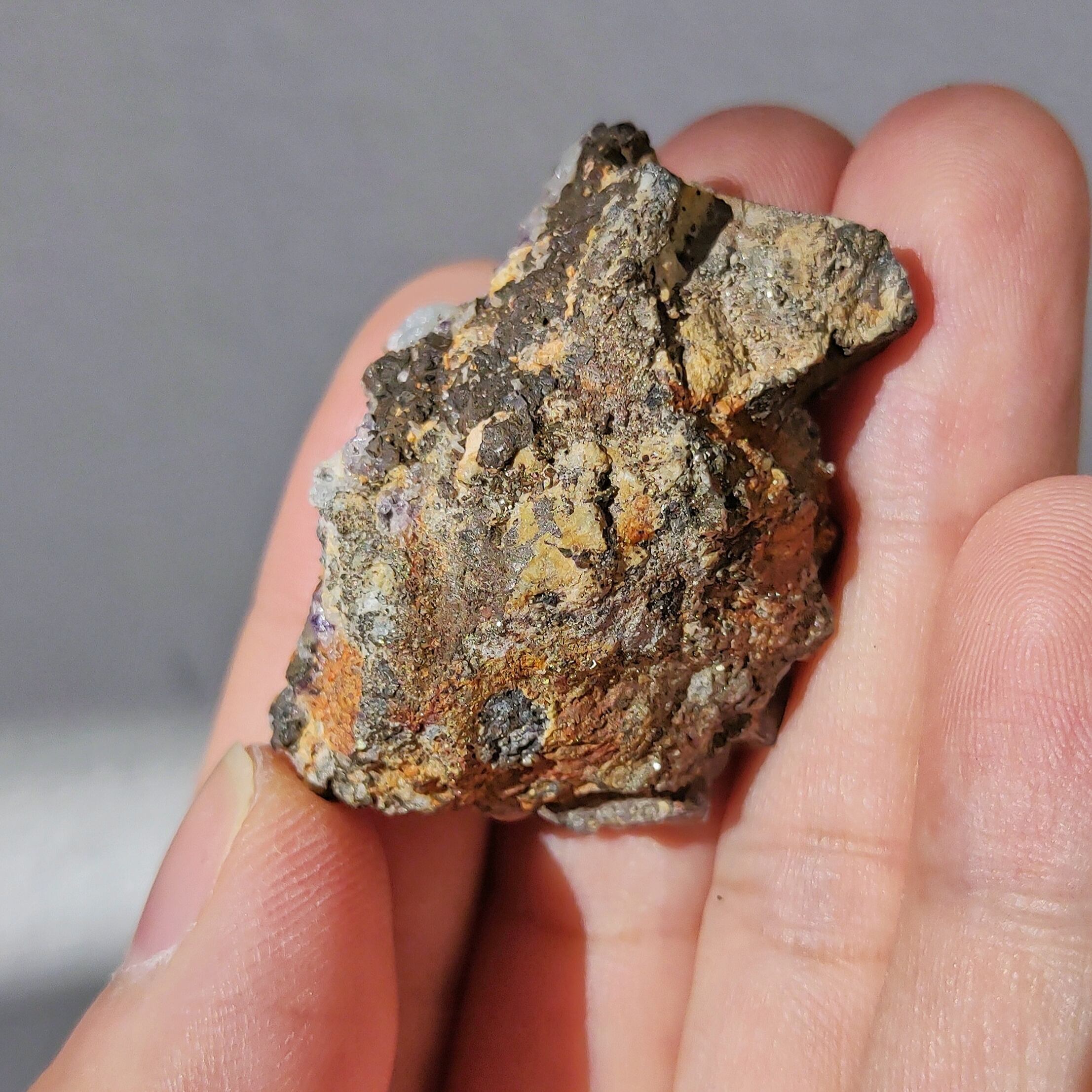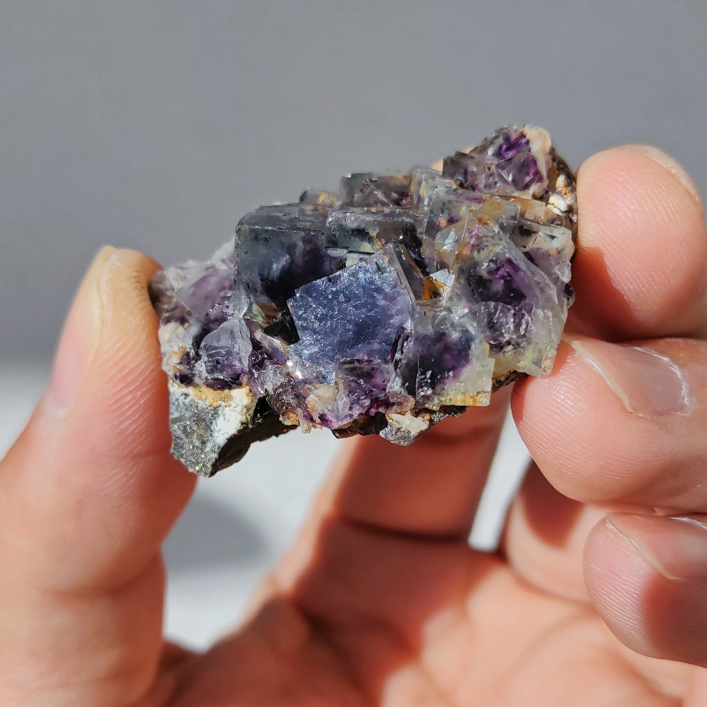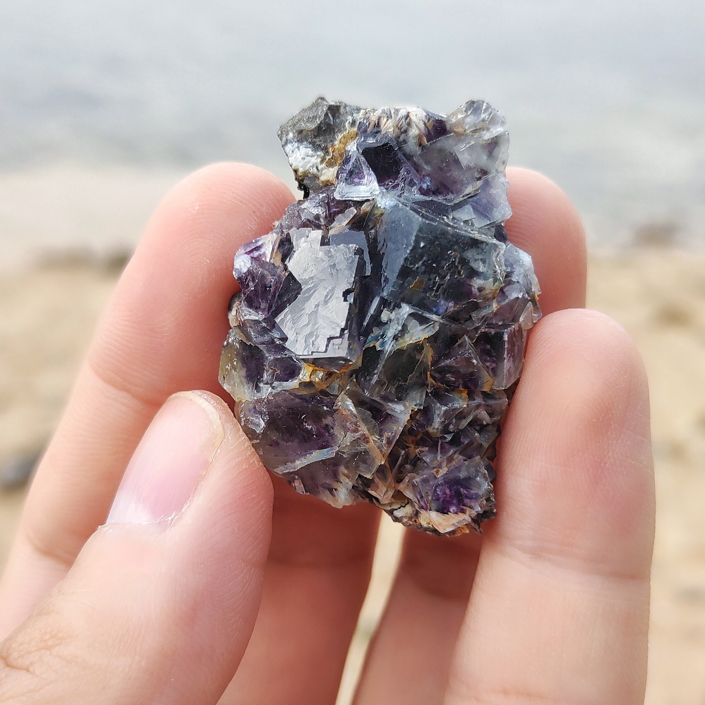 こちらは希少な内モンゴル產フローライトです。パープルコアが透過光で美しいの色合いが確認出来ます。とっても綺麗です。裏のゴールドパイライトはキラキラして、魅力は唯一無二感のあります。