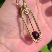 砂時計のような形や、流れ行く時の表現が特徴的なペンダントトップです。石を囲いものはピンクゴールドメッキワイヤー。