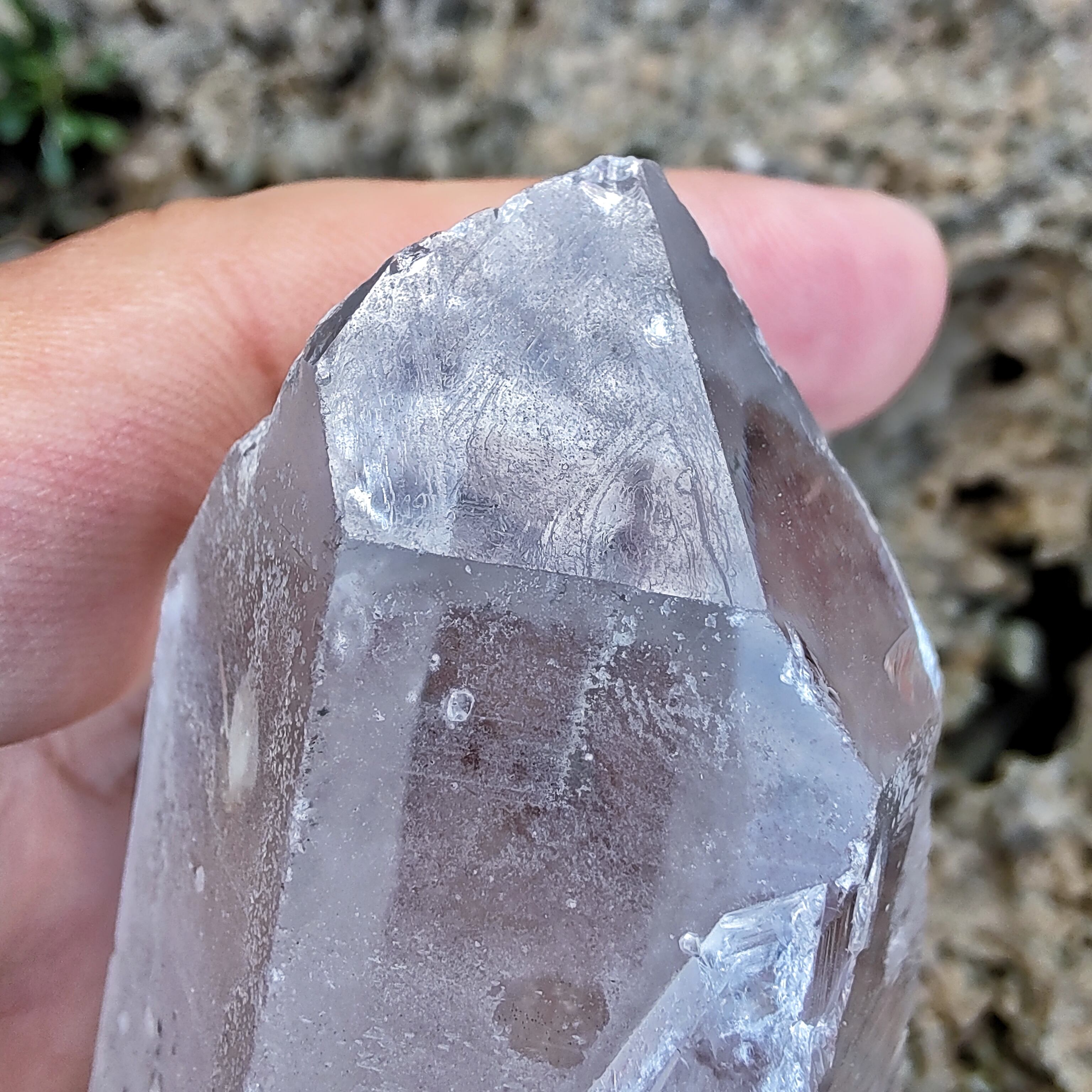 こちらは大きいレコードキーパーです、3つ錐面に大小様々な三角形が沢山見えていて、キラキラした虹も見えて、希少な不可思議なパワーを持っているようです。重さは190g。