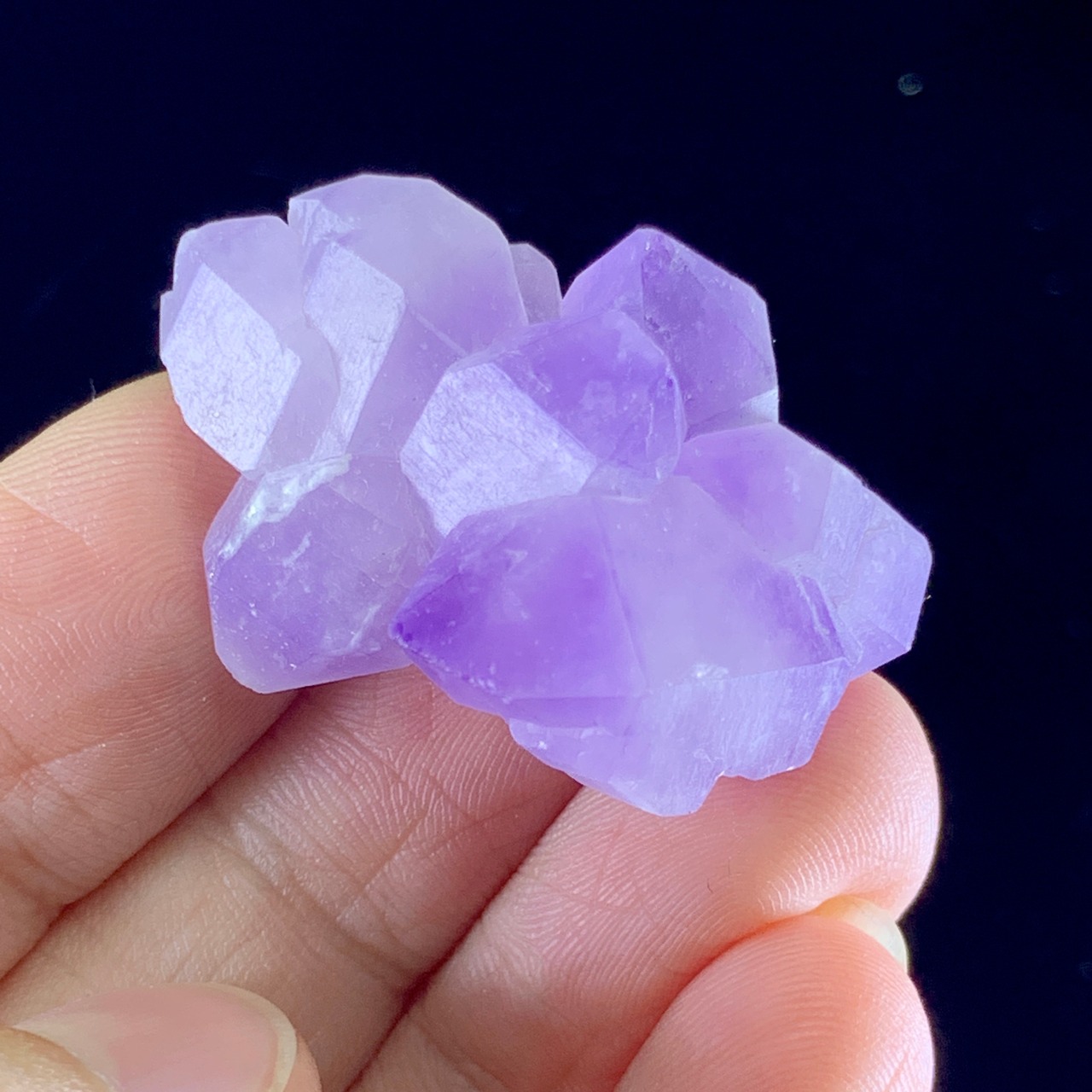 可愛いアメジスト クラスター。太陽の光に照らされて、キラキラした、パープルもピンクパープルになって、ダブルターミネーテッド(両剣水晶) が沢山集まっていますので、とても珍しいですね。