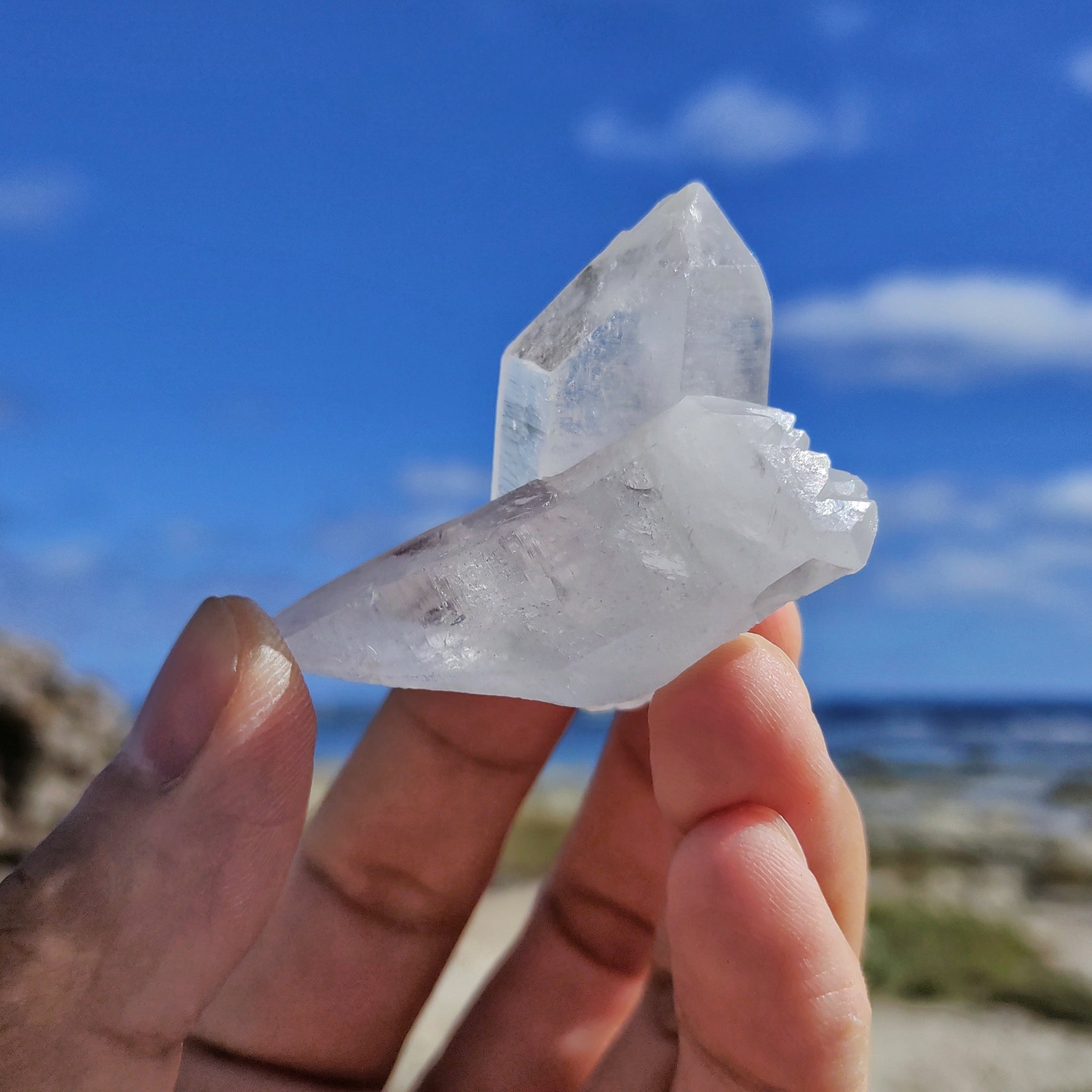希少価値の高い照り艶良く、透明感高くて、ダブルターミネーテッドです。氷のような美しさを纏い、横に刻まれた水晶の成長線であって、不可思議なパワーを持っているようです。