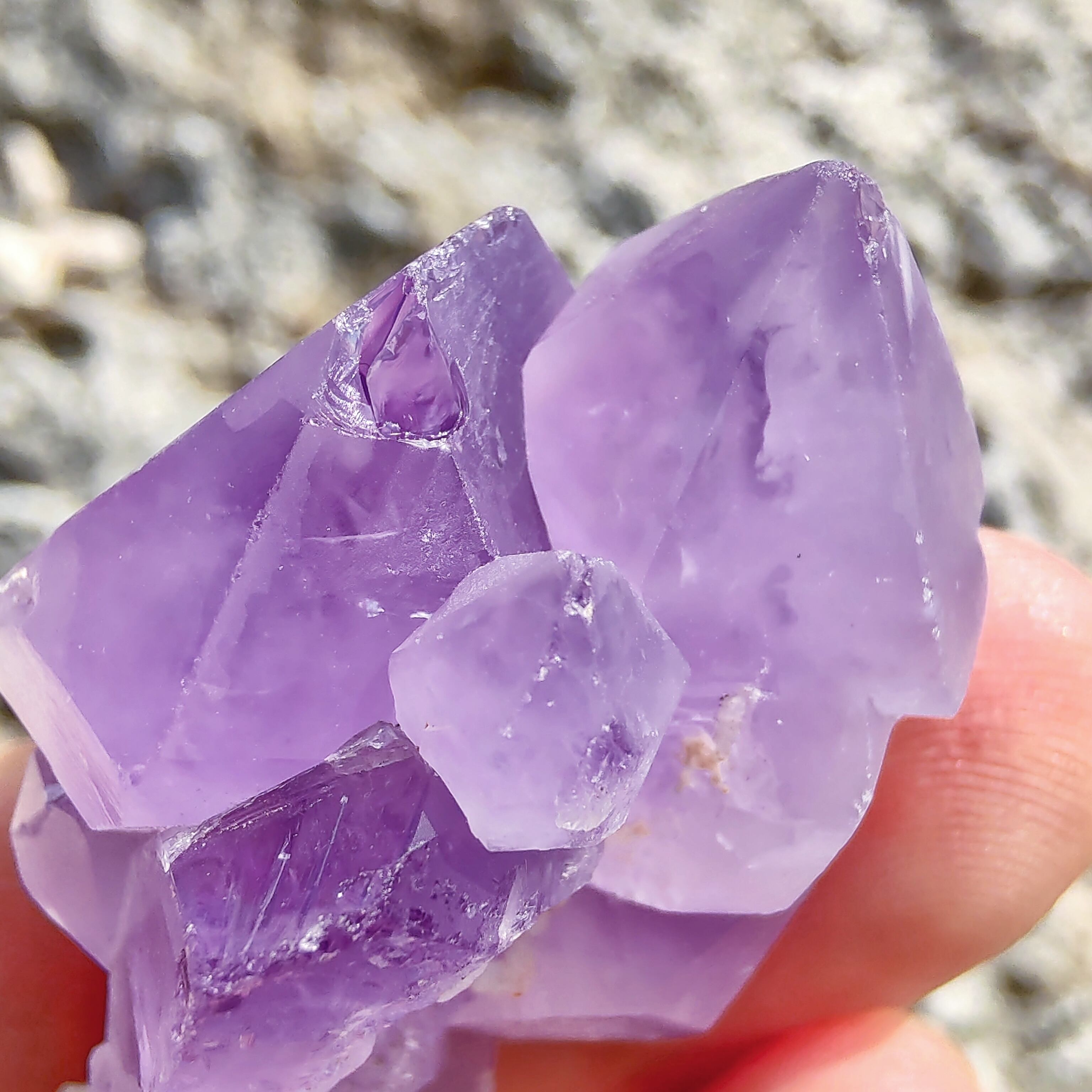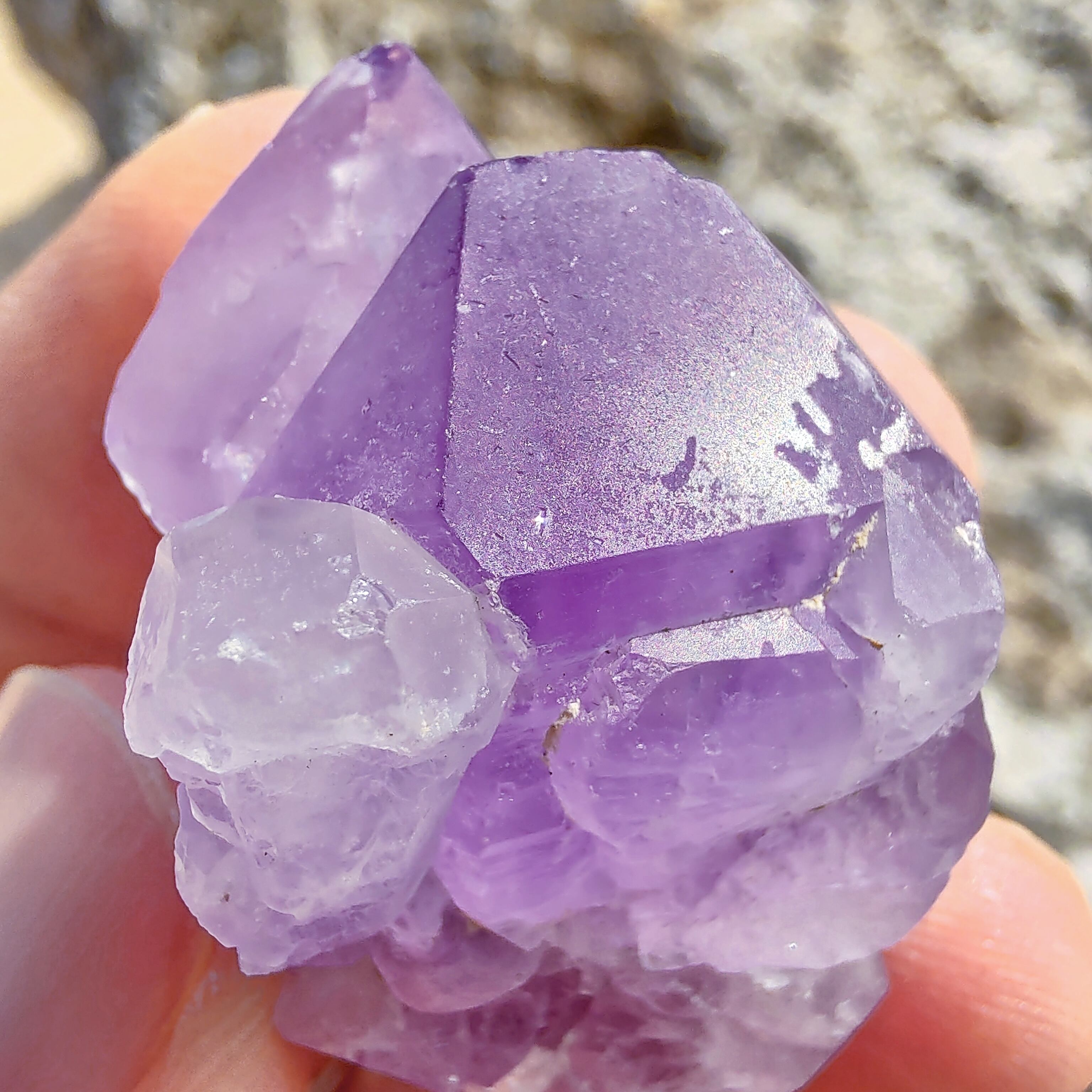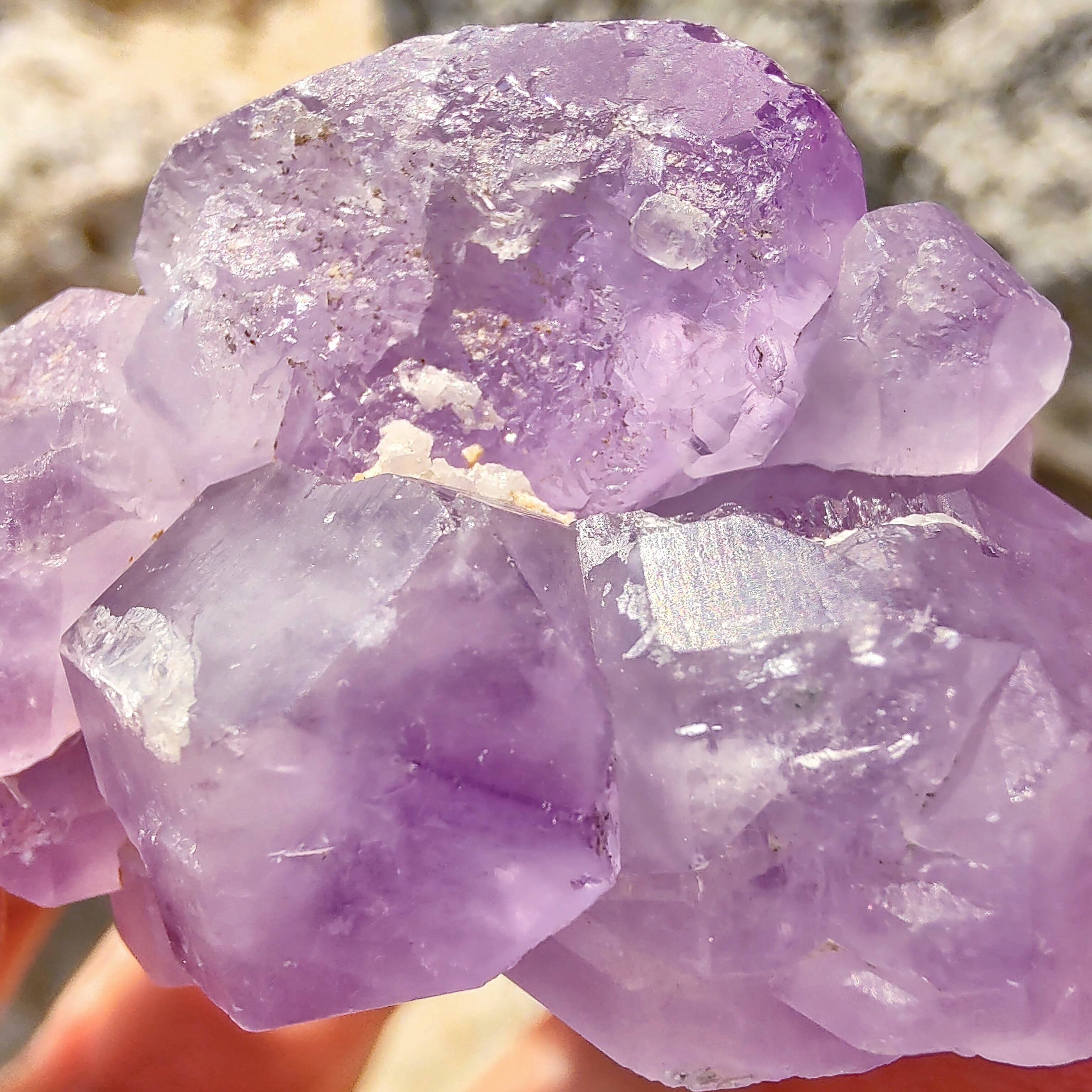 可愛いアメジスト クラスター。太陽の光に照らされて、キラキラした、パープルもピンクパープルになります。