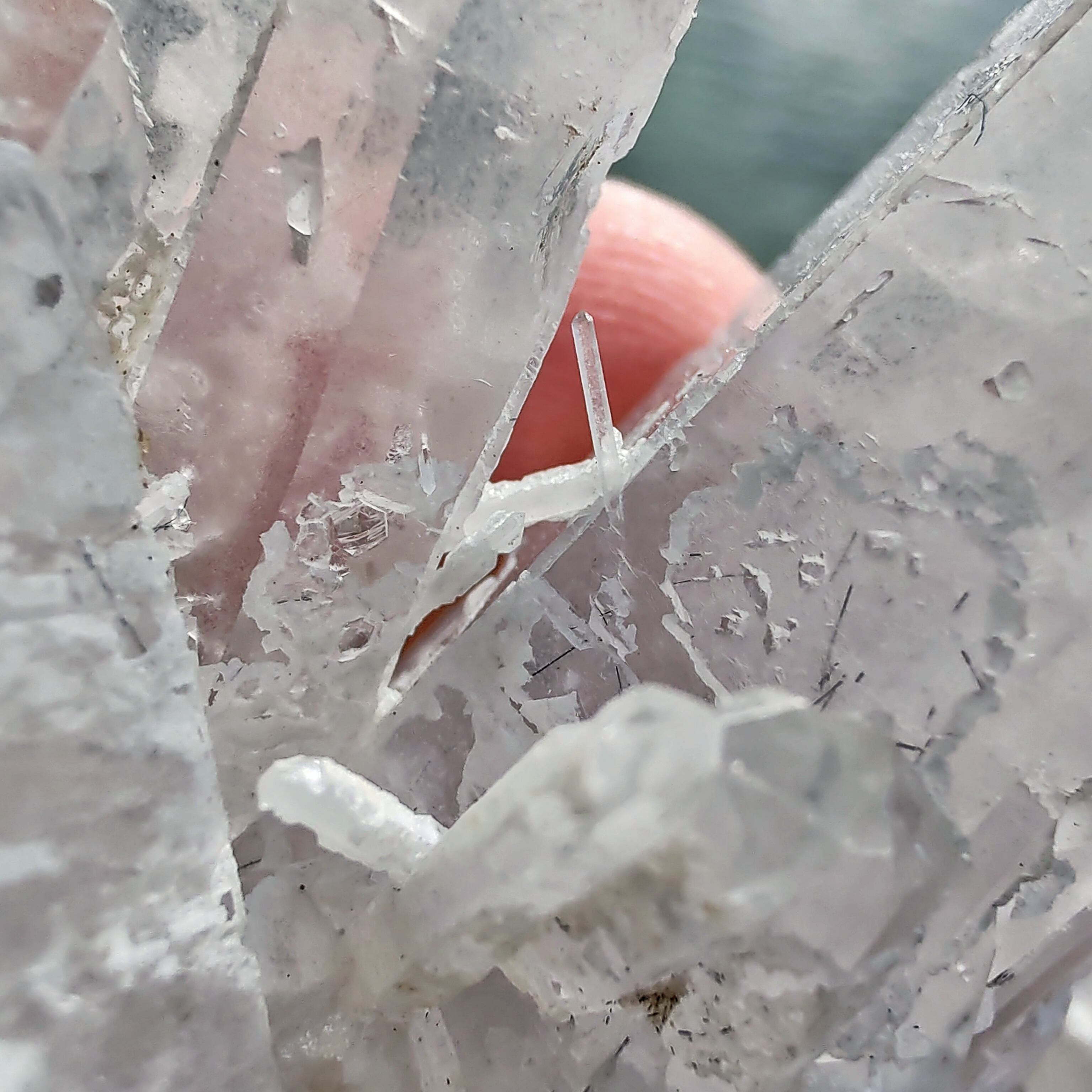 希少で価値の高いレムリアンシードとブラックルチルクォーツと共生したクォーツクラスターです。クォーツにはブラックルチルの微細な針と成長干渉水晶の特徴がはっきりと見える。それぞれのシングルポイントが立っていって、美しい幾何学的ユニークな形にしていって、「スーパーマン」の星から来たような…クォーツクラスターの根元には細かくて、小さくて、完全なクォーツもたくさん見られ、サプライズ...