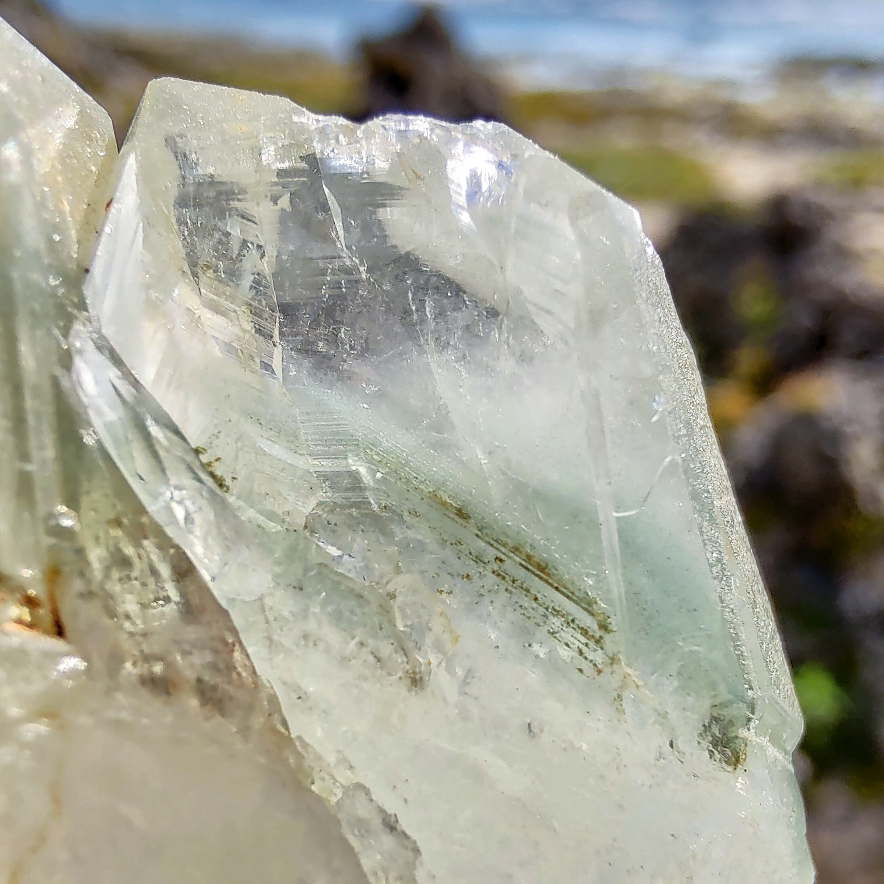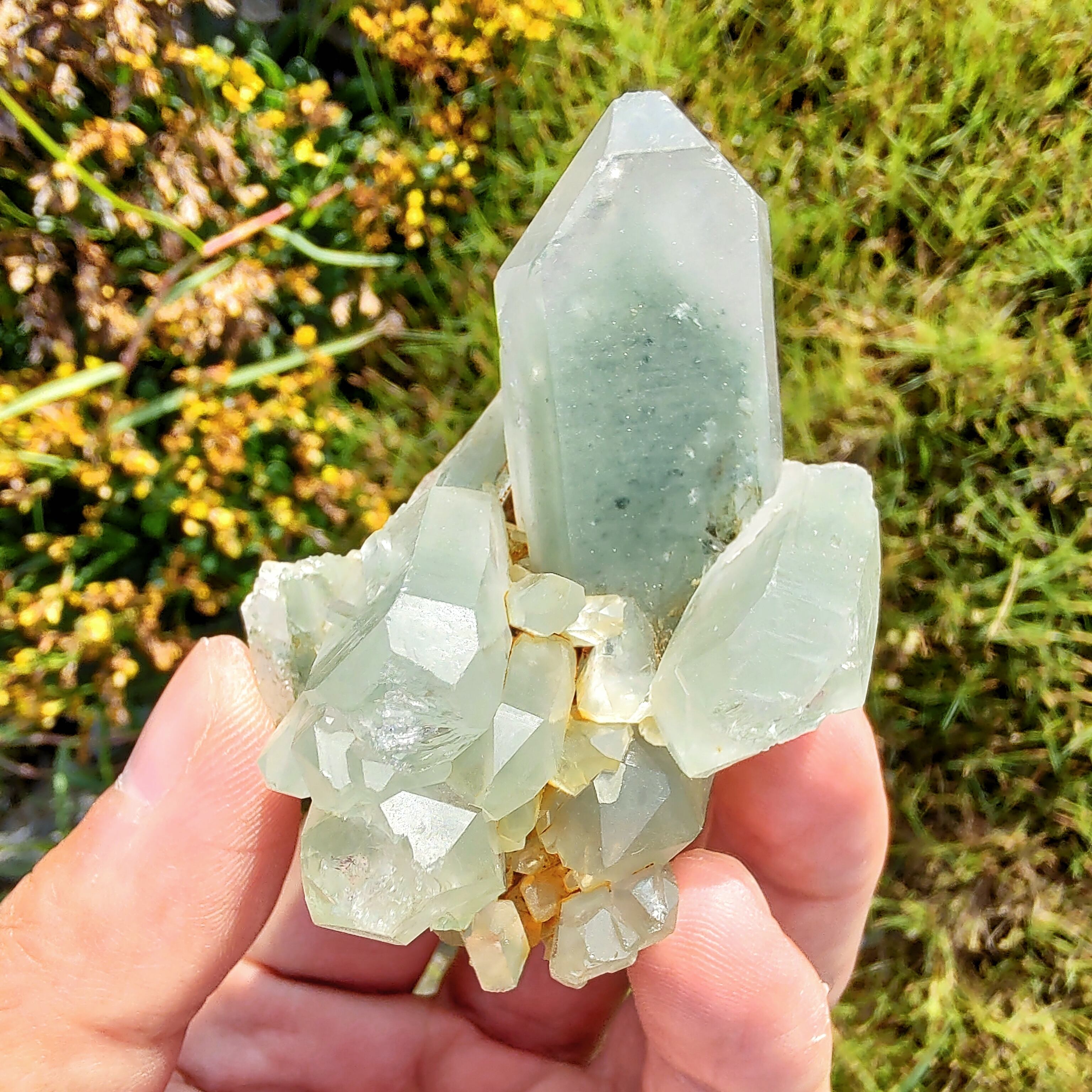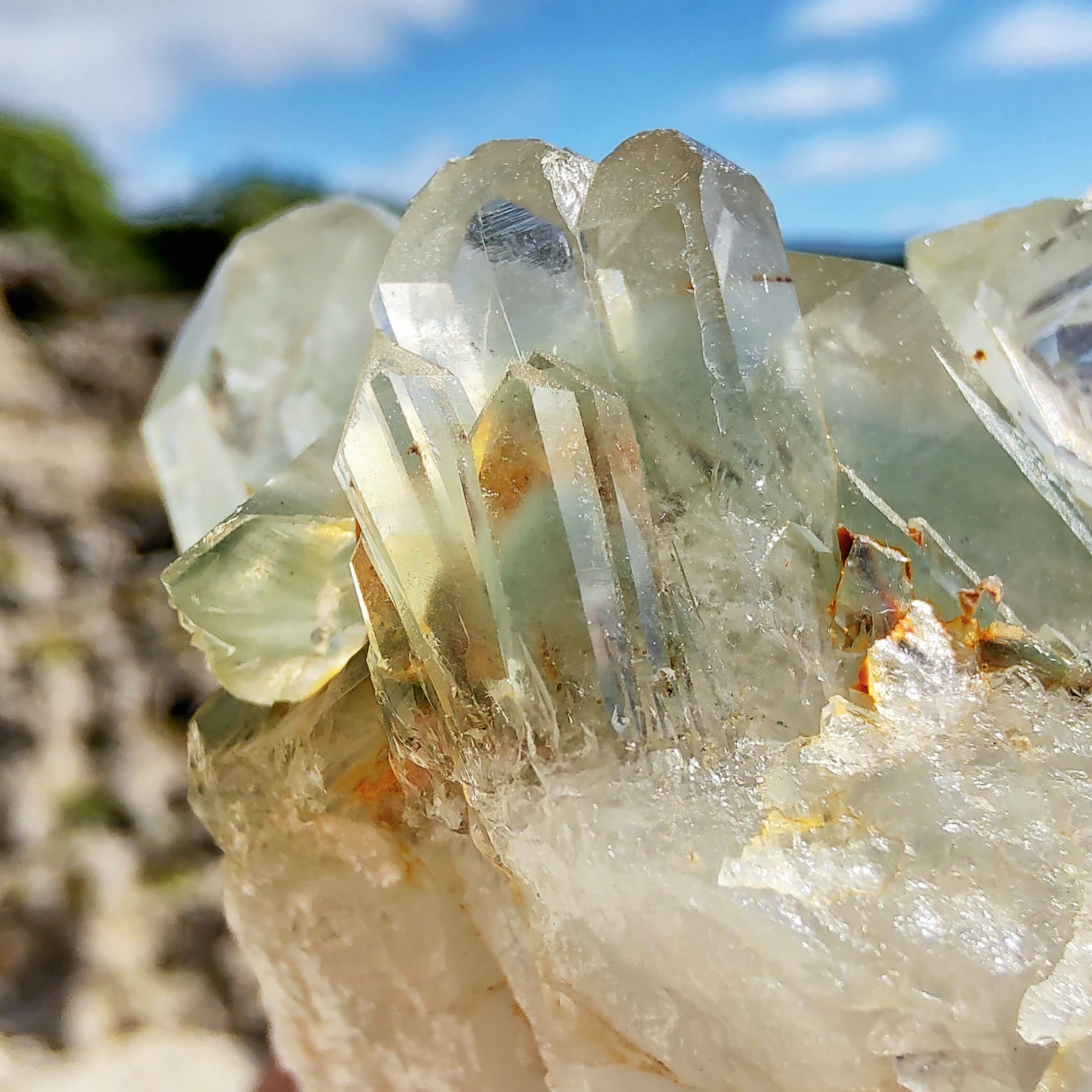 大きく、希少でガーデンクォーツのレコードキーパーです。锥面には肉眼で三角形が沢山見えて、クォーツの中にはグリーン山型が何層にもなっているものも見られので、希少な不可思議なパワーを持っているようです。