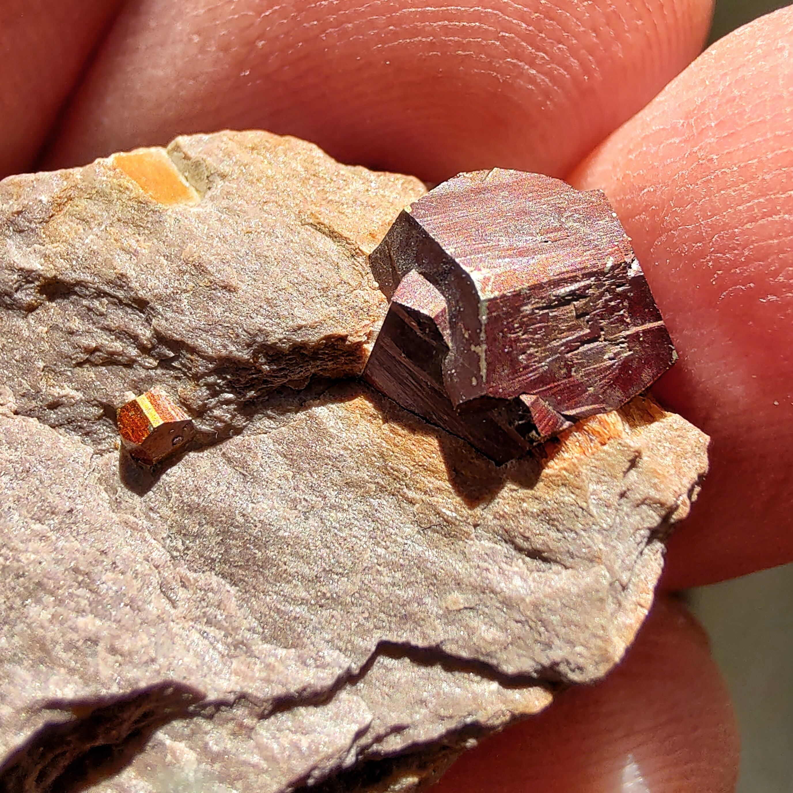 パイライトの原石です。美しく、2つ大きさ違い12面の金属光沢な立方体のような結晶はかっこいいです。母子みたい。太陽光下大変美しく、キラキラと輝きます。