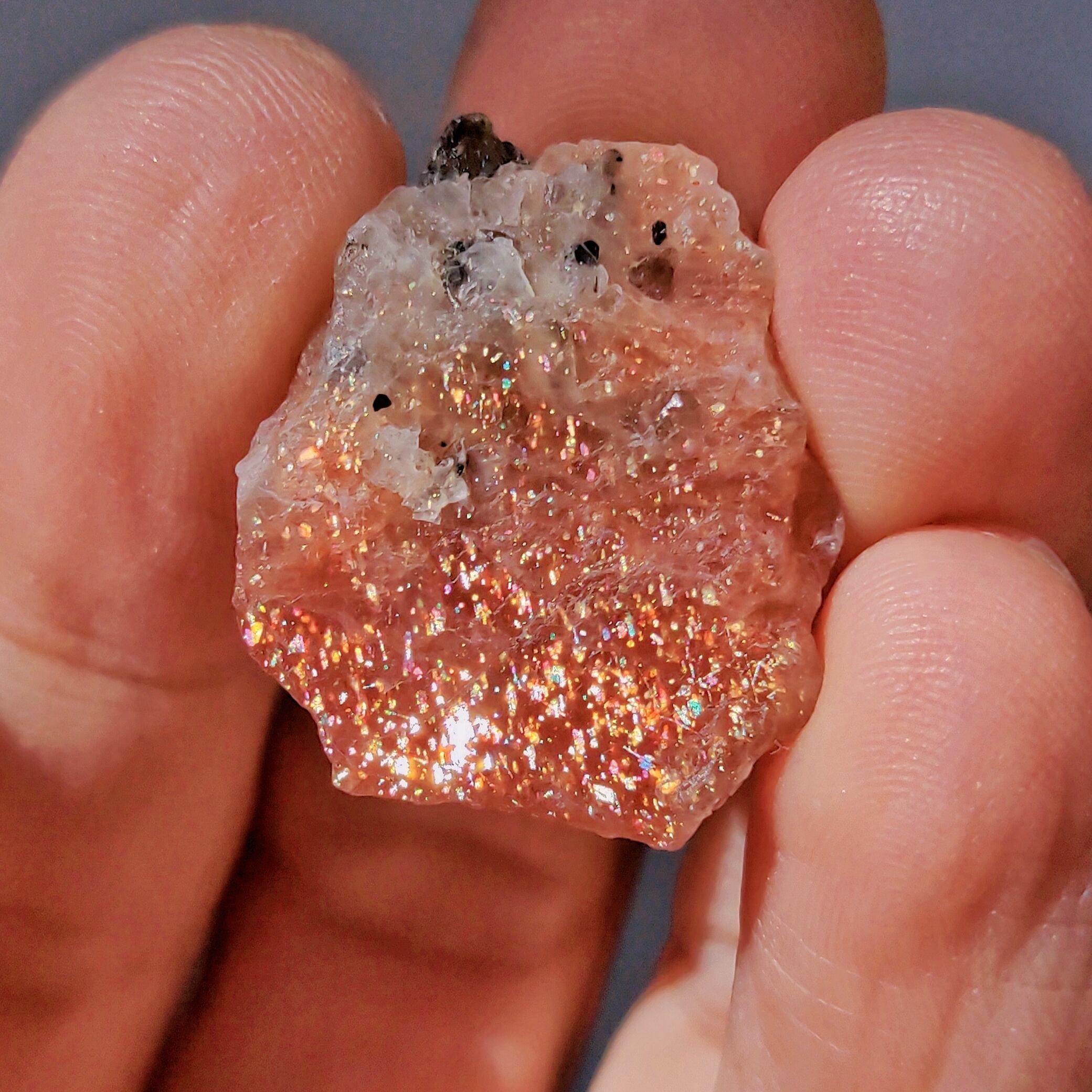 希少なサンストーン原石。ばかりの鮮やかさ・眩さを持ち、光の角度によって生まれるフラッシュはまさに日の出日の入りの一番艶やかな太陽を感じさせます。