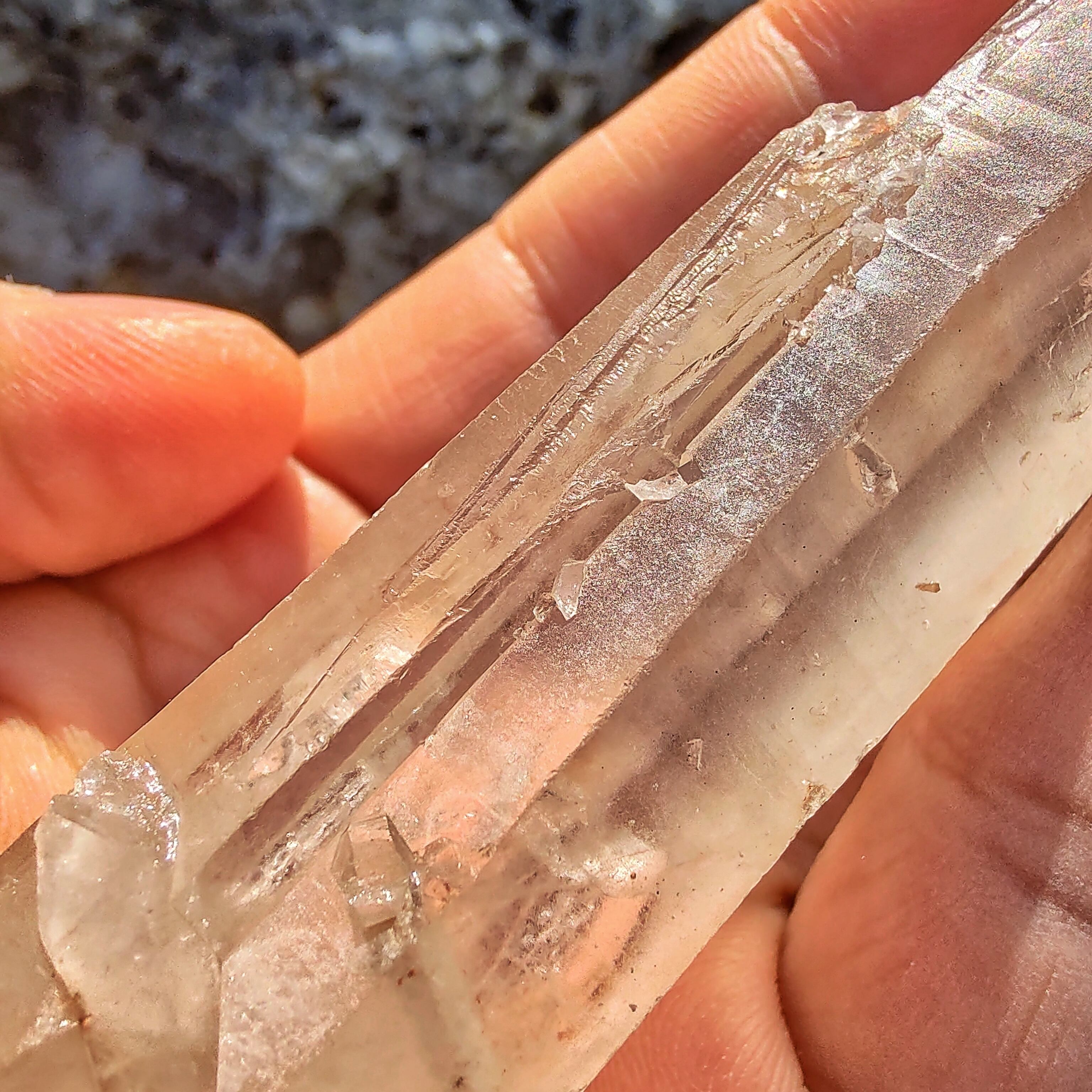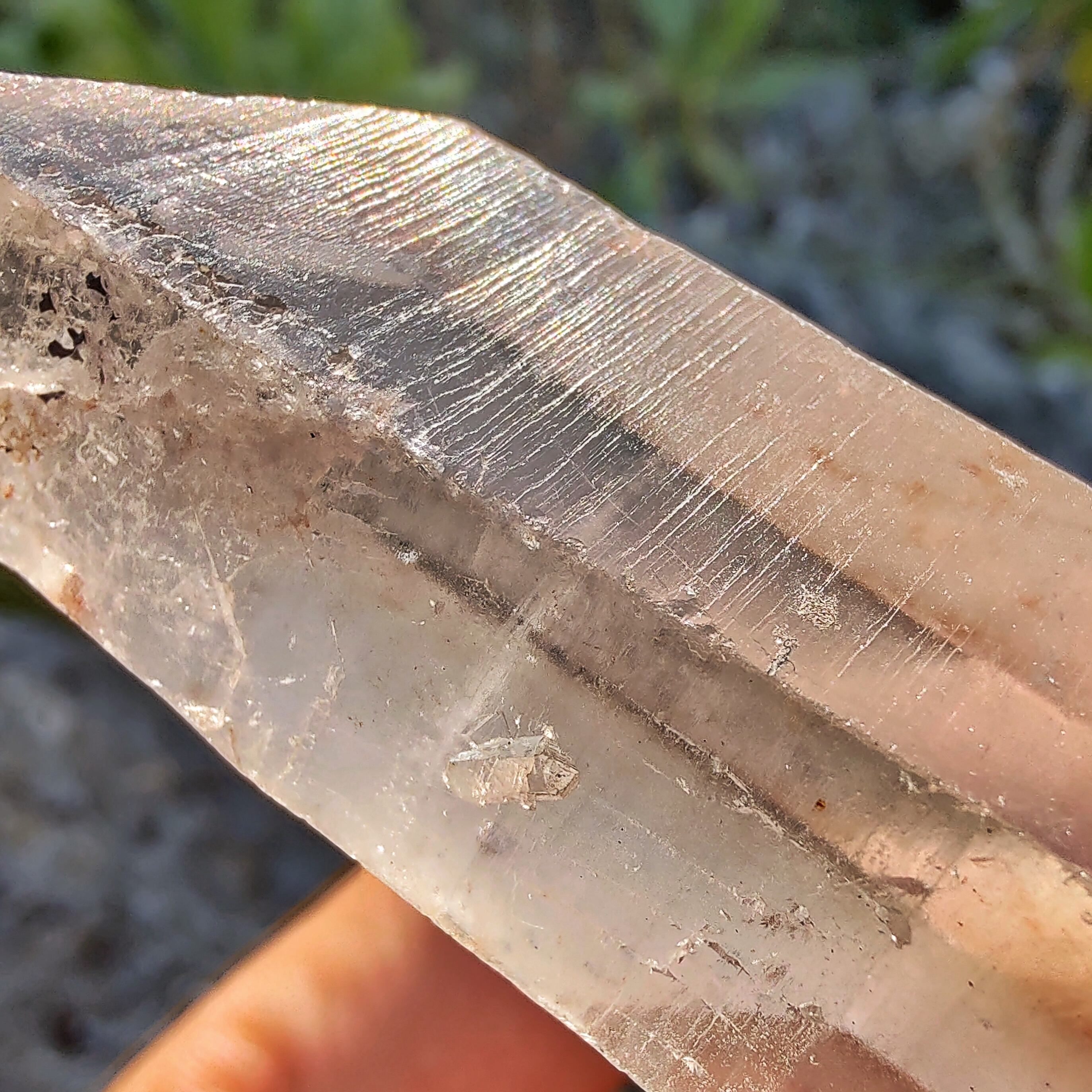 希少価値の高い照り艶良くレムリアンシードです。氷のような美しさを纏い、横に刻まれた水晶の成長線であって、水晶は、二つのクリスタルが共通(一つ)の根元から成長していますので、タントリックツインと言います。人と人との結びつき、更にはあらゆる物ごとに対して調和をもたらしてくれるといわれています。