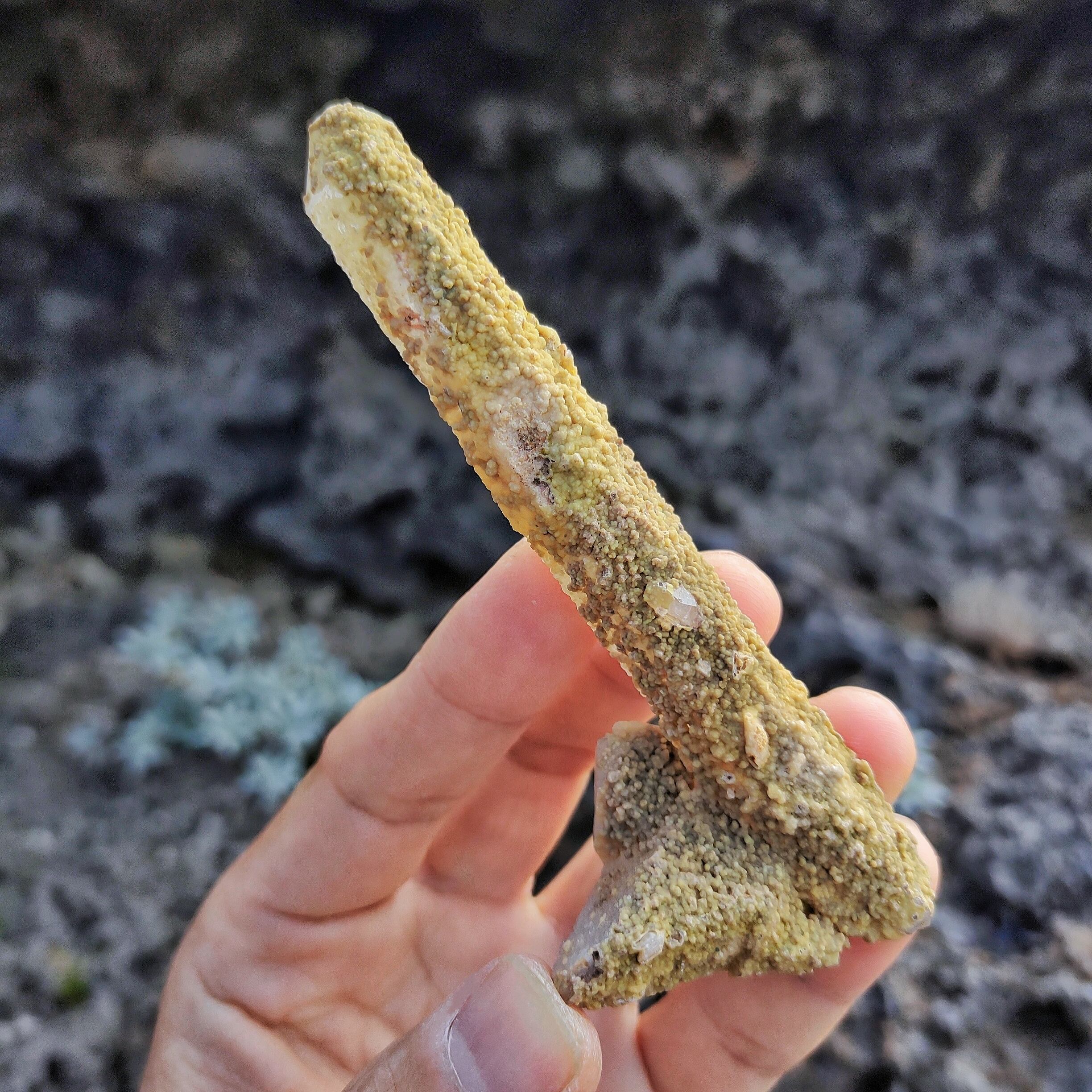 こちらは希少な内モンゴル産のレムリアンシードです。クォーツは完全な六角柱状で、3つの面には龍の鱗の様な表面の質感を持って、ほかの3つ面には茶色いものが付いています。独特のスタイルで、何処か神秘的な崇高さがあって、陽光の下キラキラした。日本の市場にはユニークなクォーツだと思います。