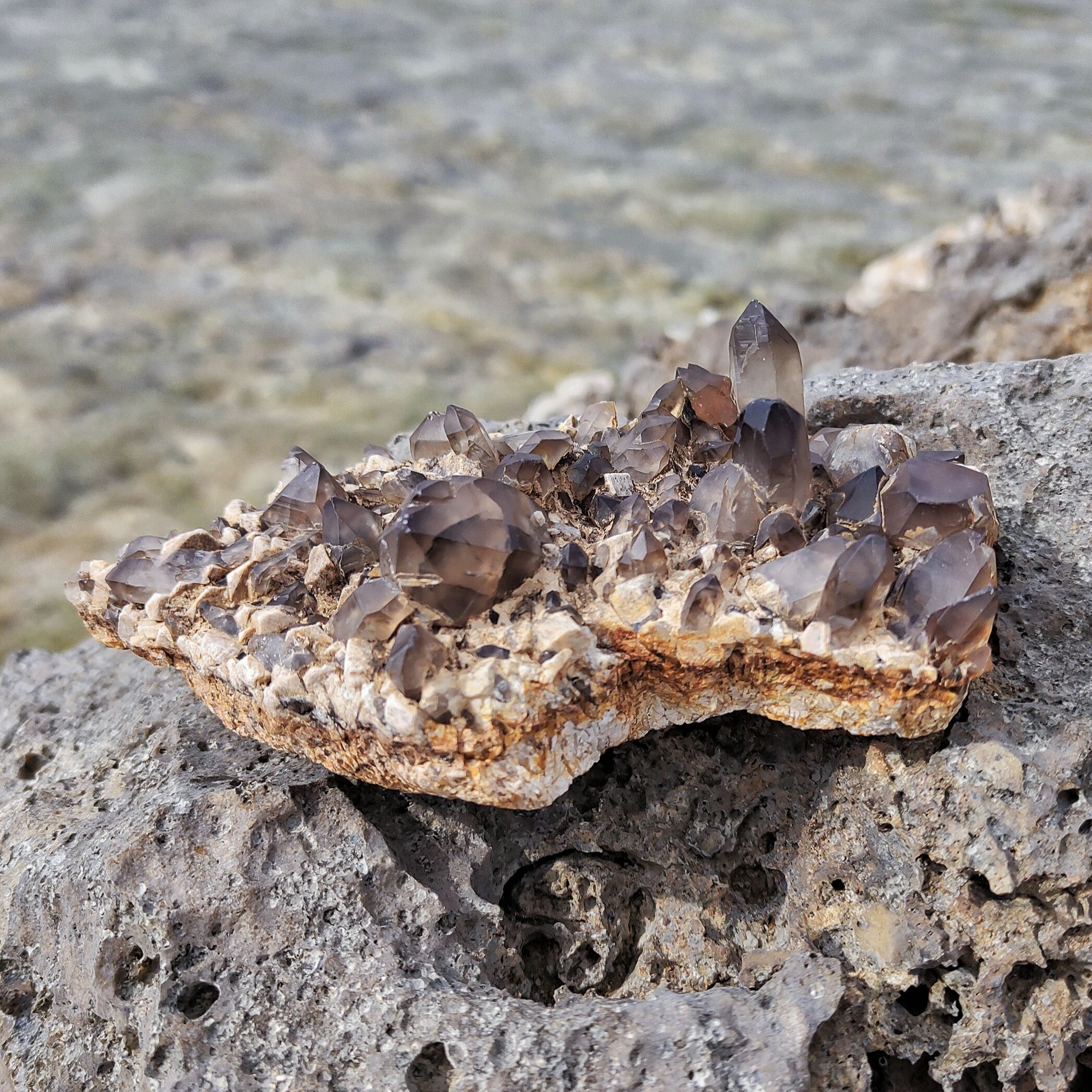 大きな希少価値の高い照り艶良く、スモーキークォーツのクォーツクラスターです。母岩にはいくつスモーキークォーツが立てていって、強いエネルギーを持っているようです。光の下とても綺麗です。かっこいい置物だと思います。