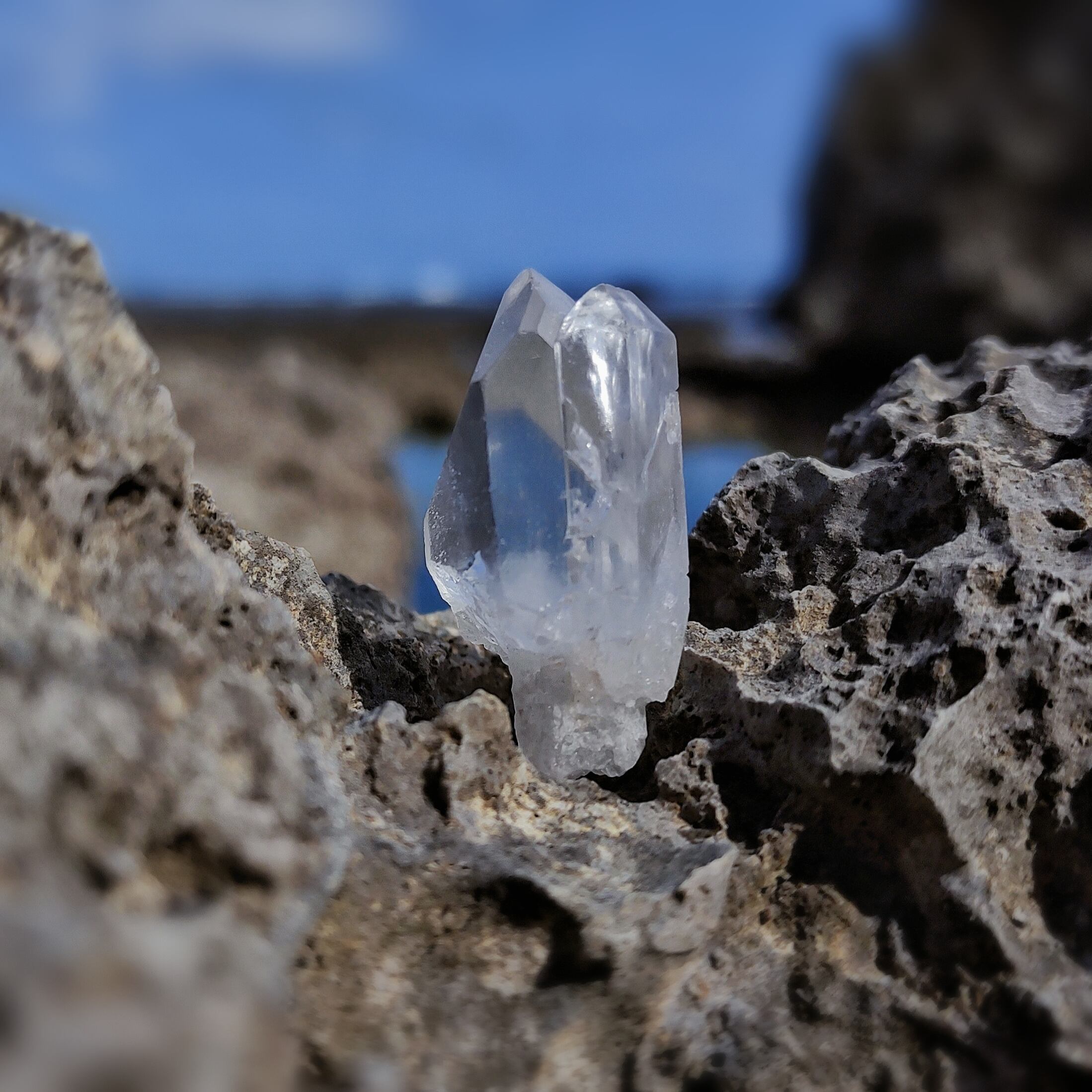 松茸状の先端の部分にエネルギーが集中すると言われています。現状を突破する、障害を越えていく、頭脳を明晰にするのに役立ちます。クリスタルの周りに、小さなクォーツが群生している、クラスターを形成しているものもあります。尾部は杖柄のような形をしたクラスタで、取るやすいです。