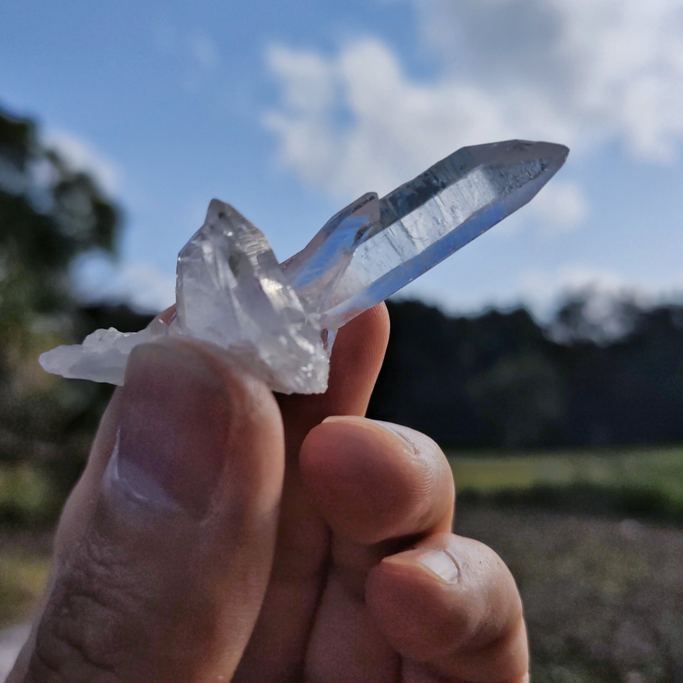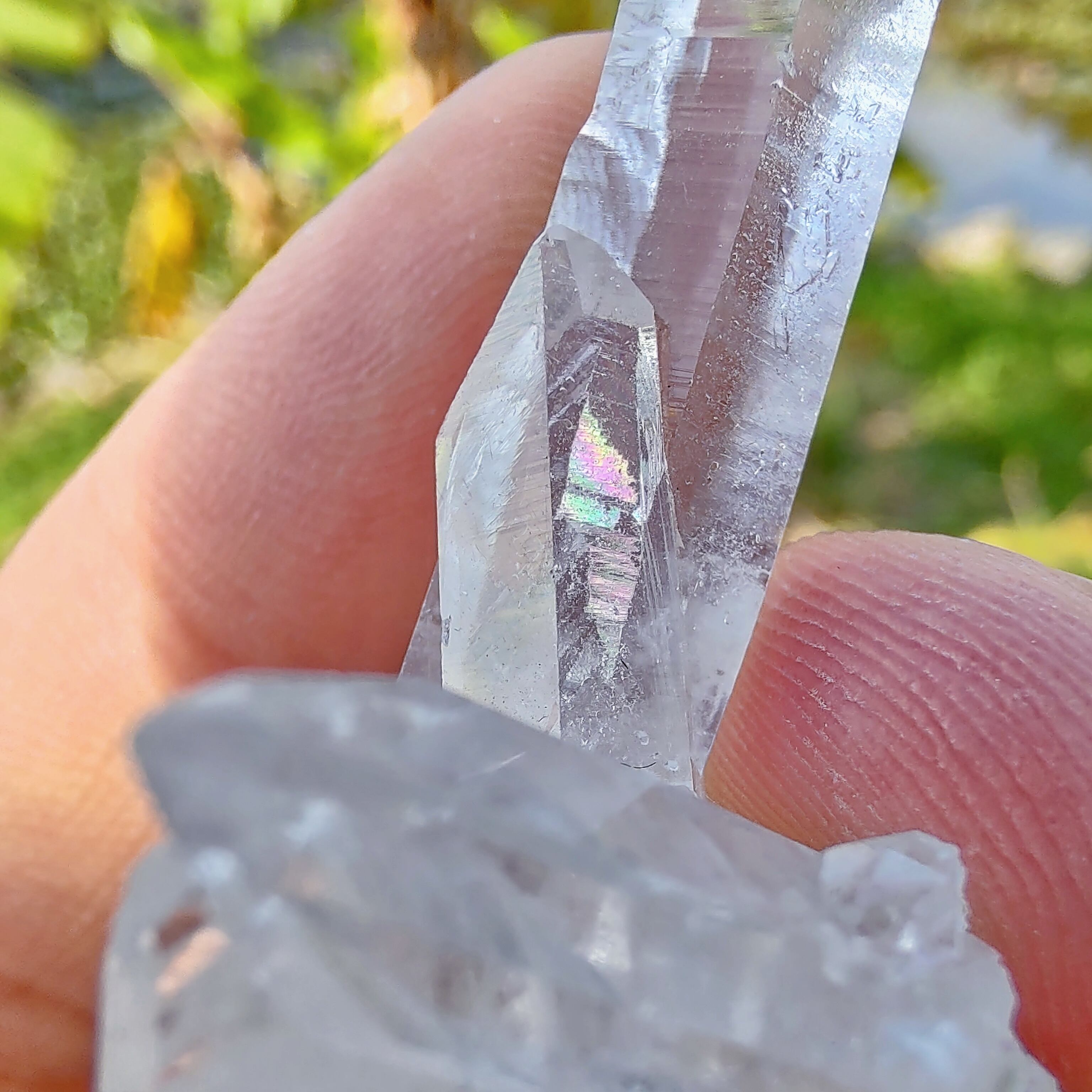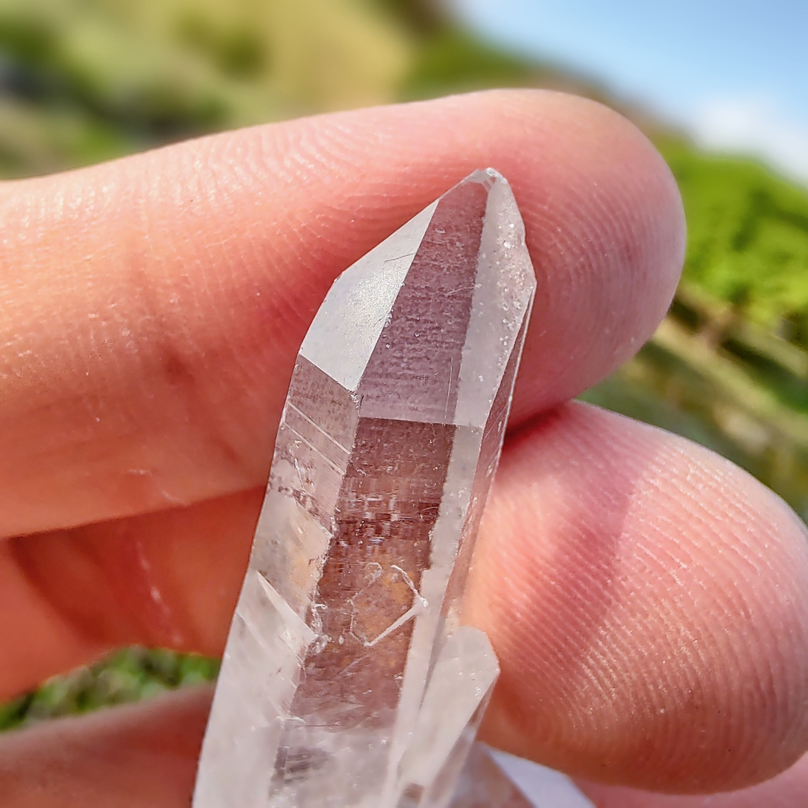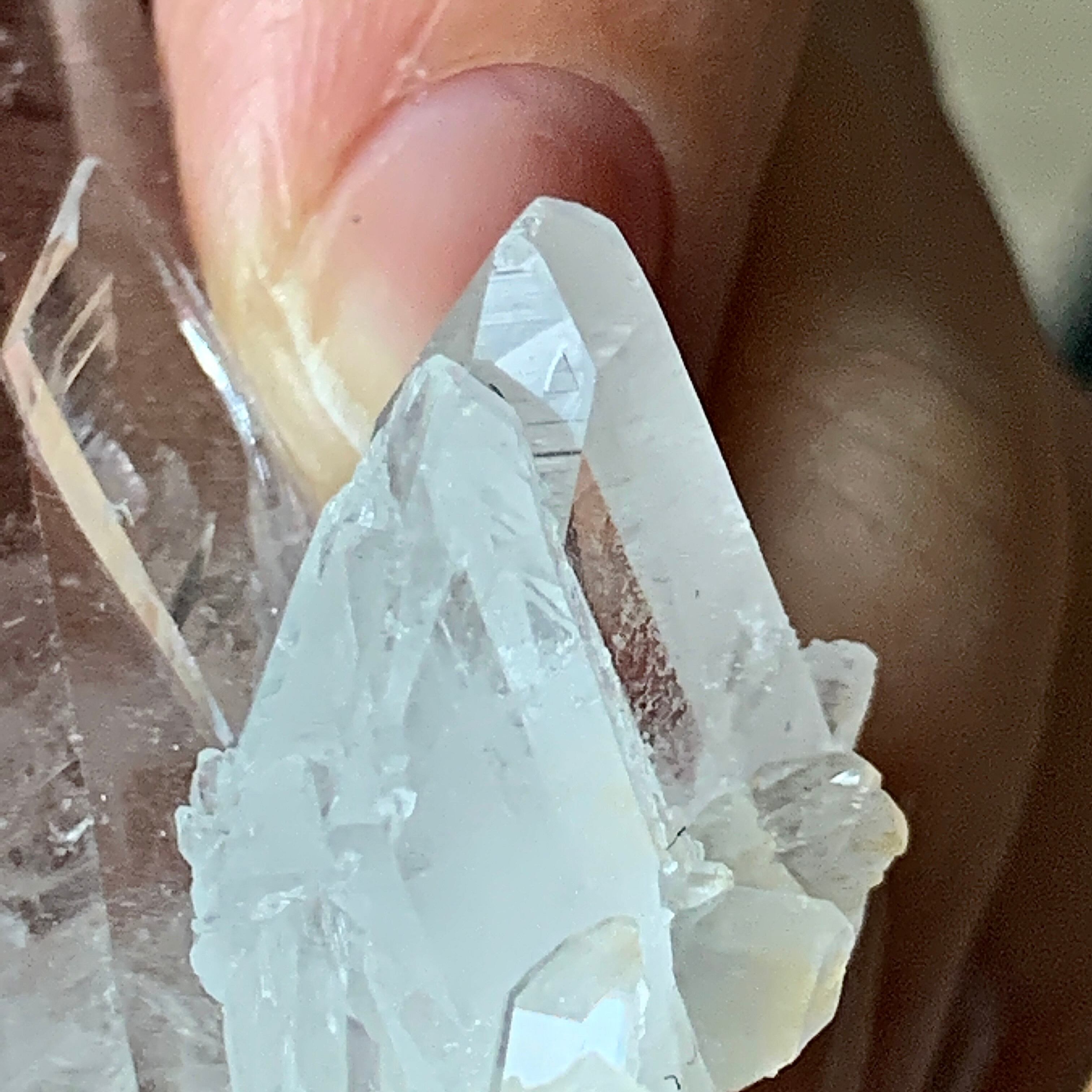 希少な透明度が高い照り艶良く、綺麗なレコードキーパーのクラスターです。小さいクォーツたちが重なって成長している、一つ錐面に肉眼で三角形▲が見える、不可思議なを持っているようです。可愛いです。