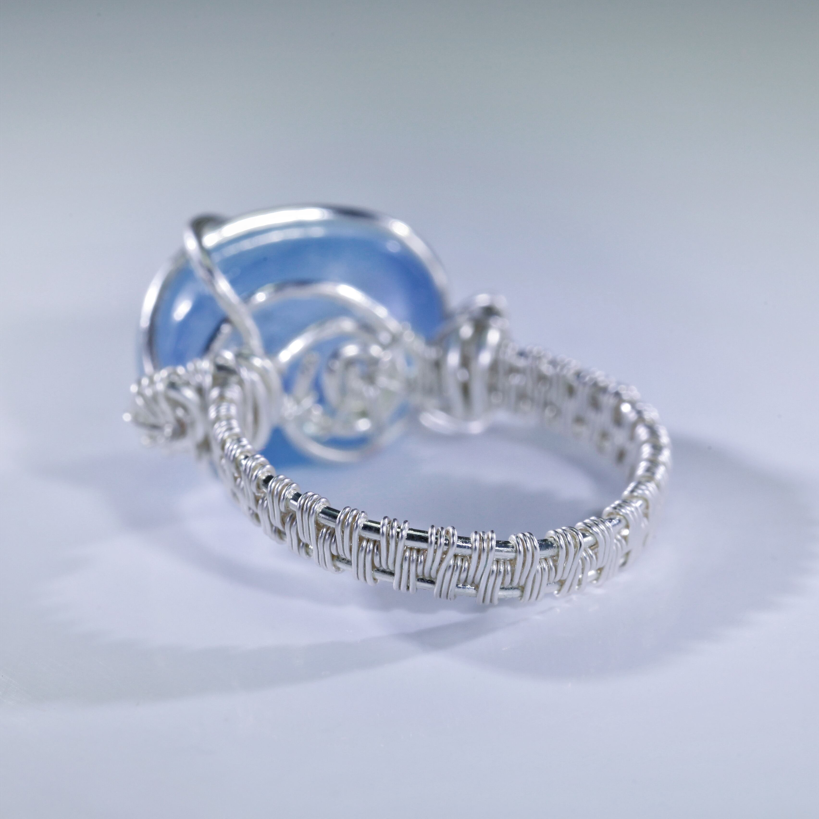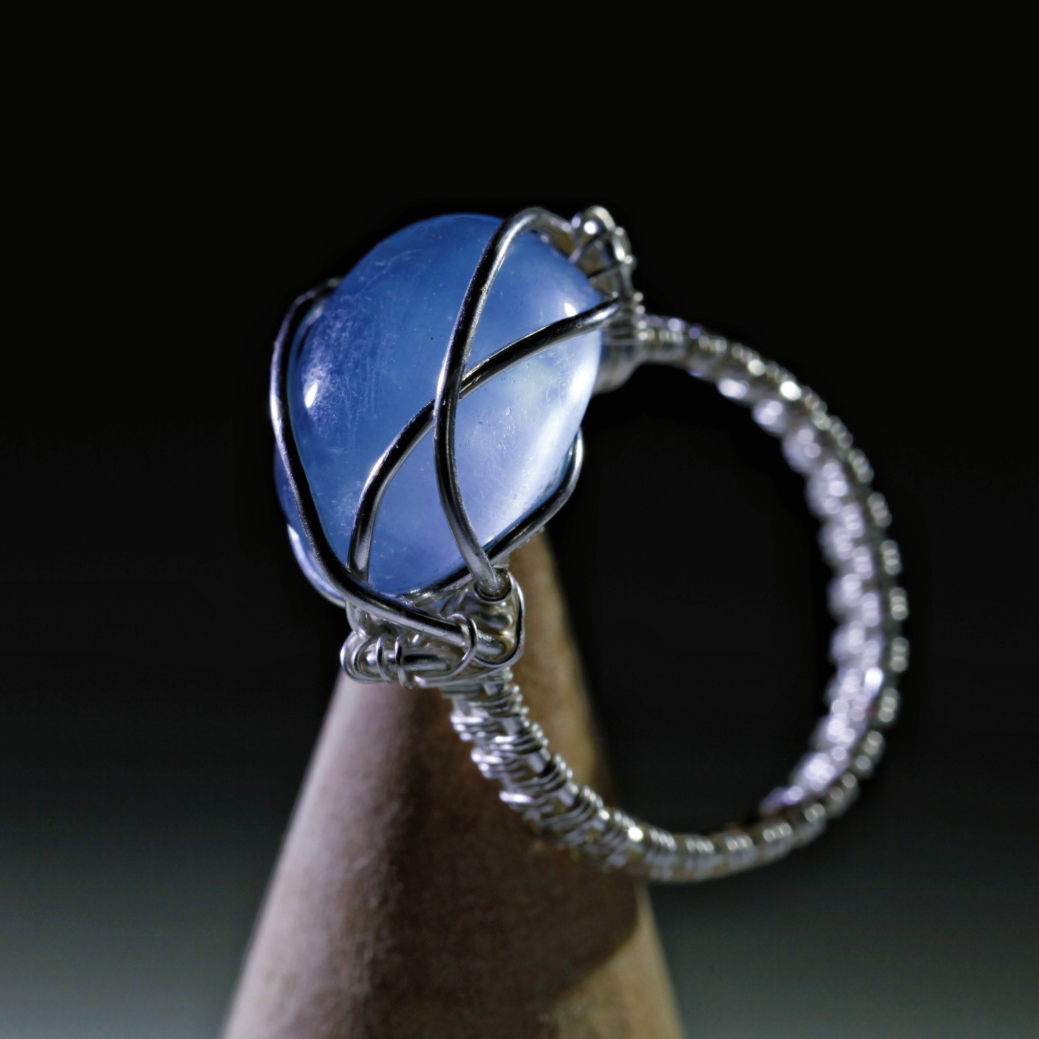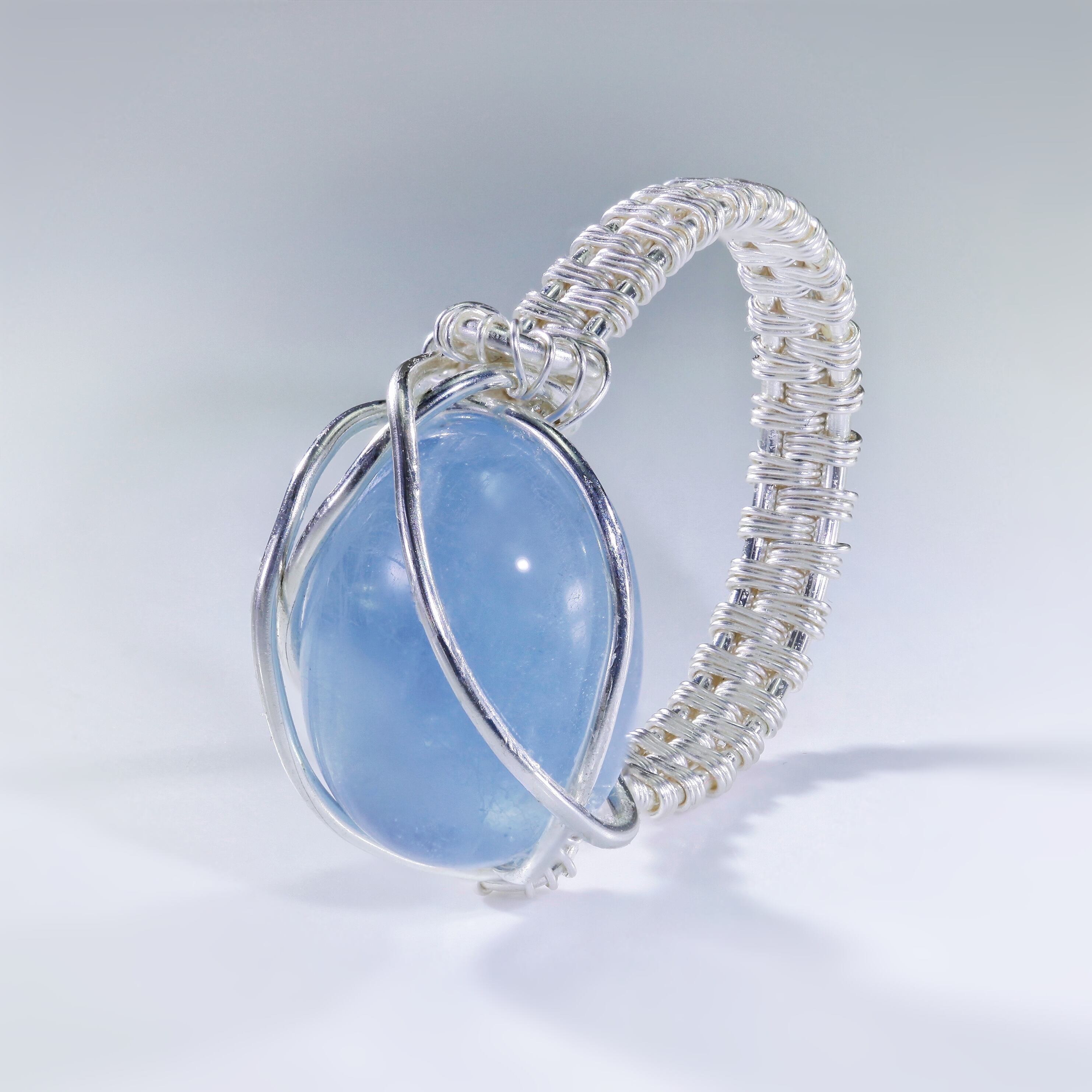 3月のお誕生石、清らかな癒しのアクアマリンの手作りリング、爽やかな半透明で、水色が美しいです!シンプルではありますがシルバーメッキワイヤーをたっぷりとあしらっているので、美しく存在感を感じられます。