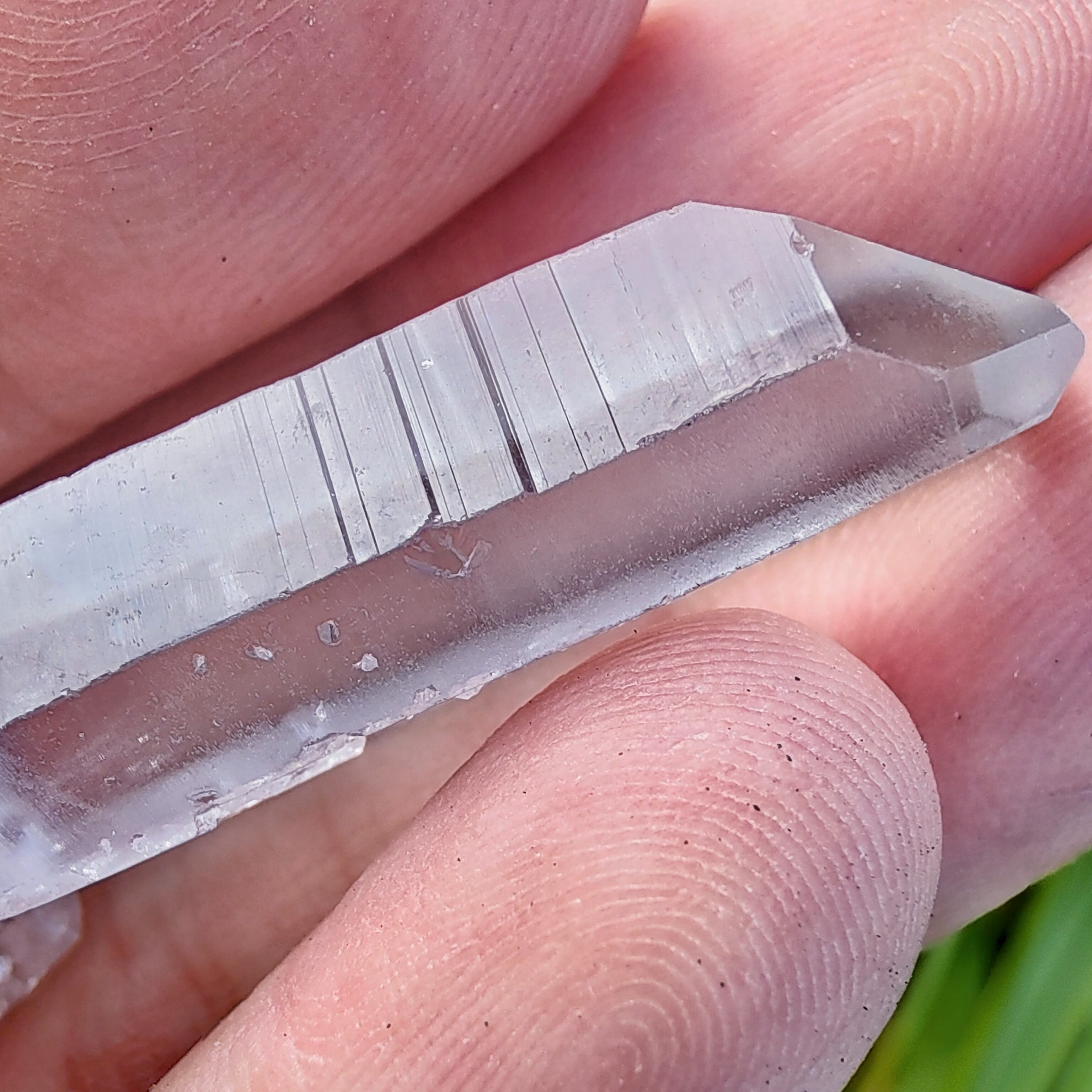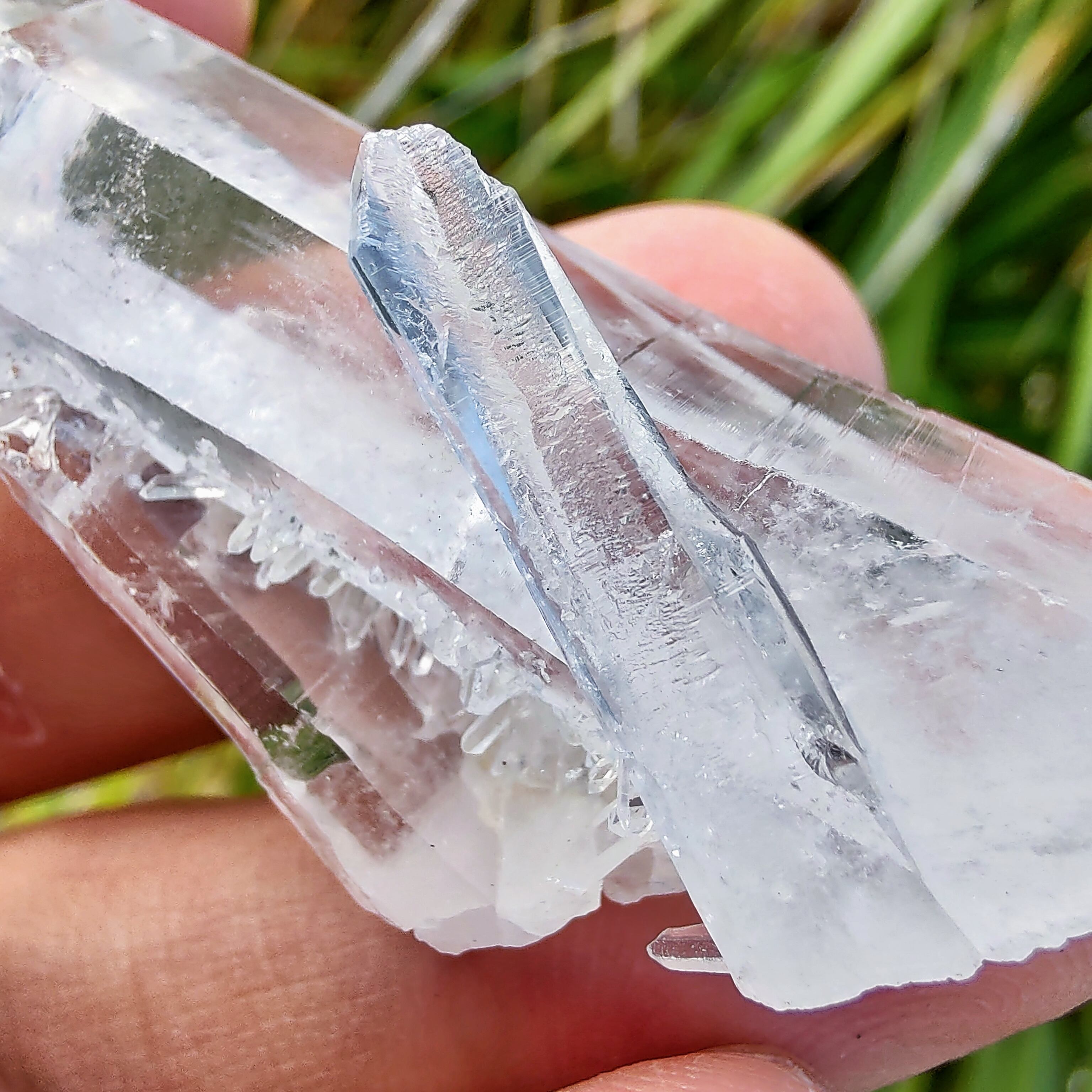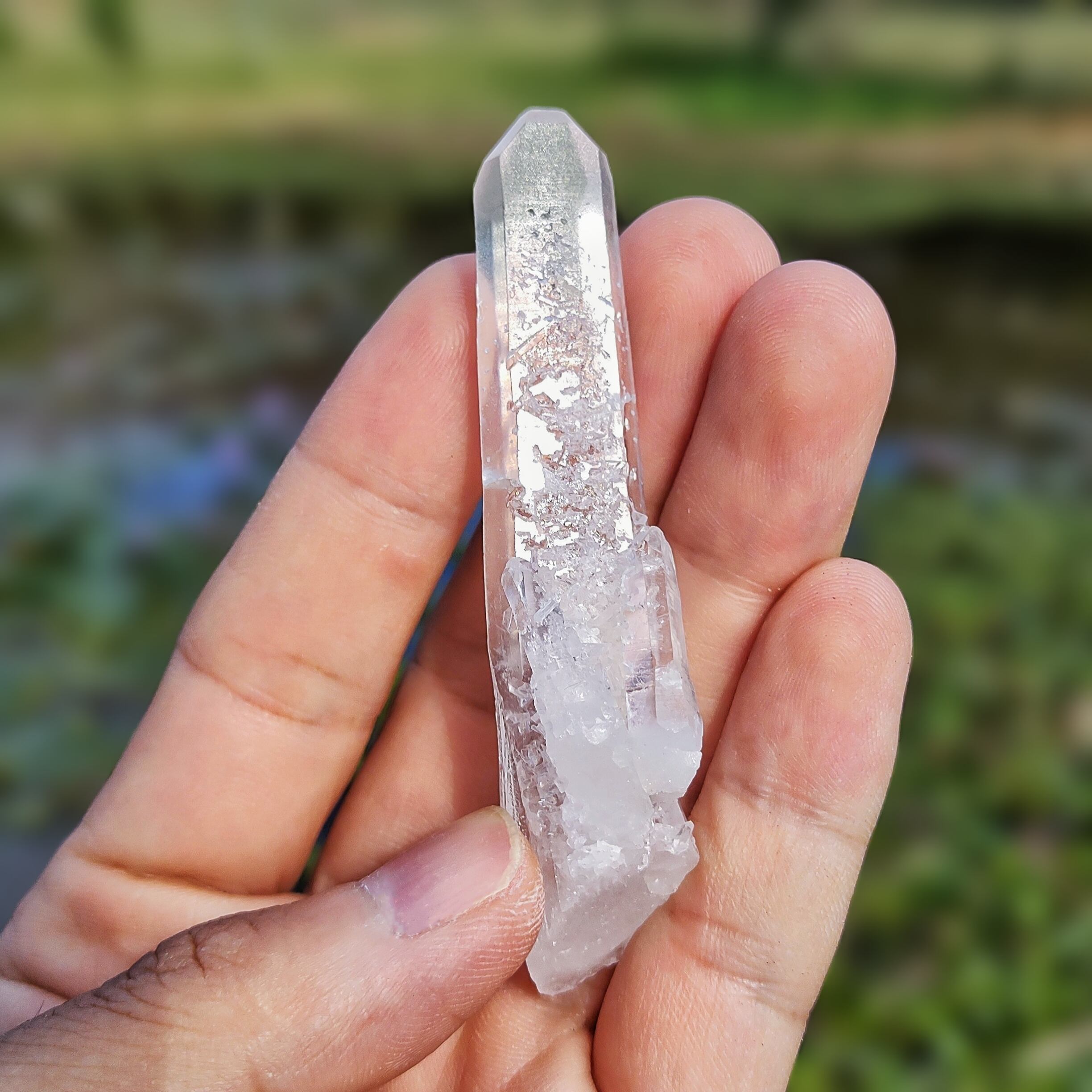 希少価値の高い照り艶良く、透明感高くて、レムリアンシードです。氷のような美しさを纏い、横に刻まれた水晶の成長線であって、クォーツには成長干涉水晶の特徴がある、根元にも小さいクォーツが沢山集めると、不可思議なパワーを持っているようです。