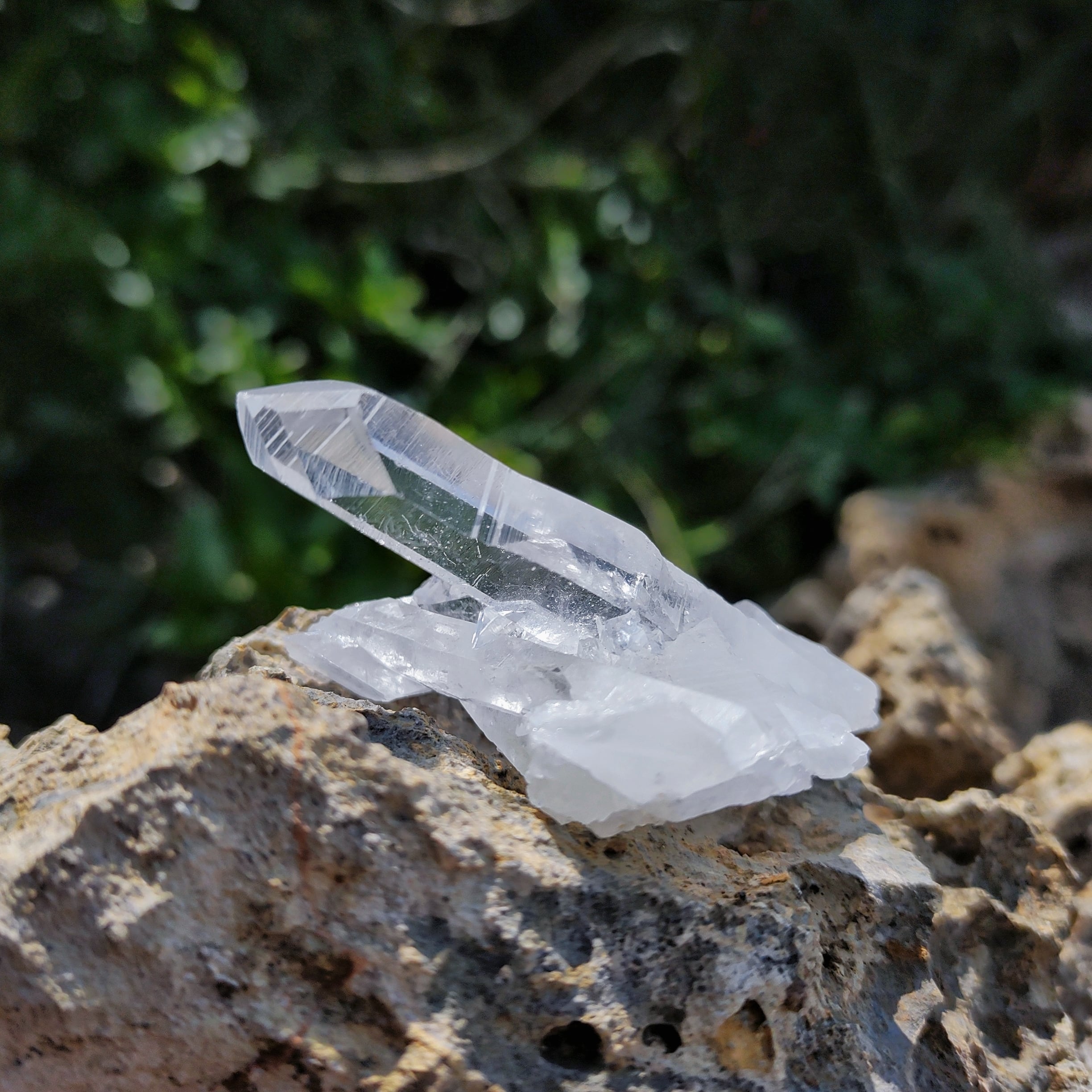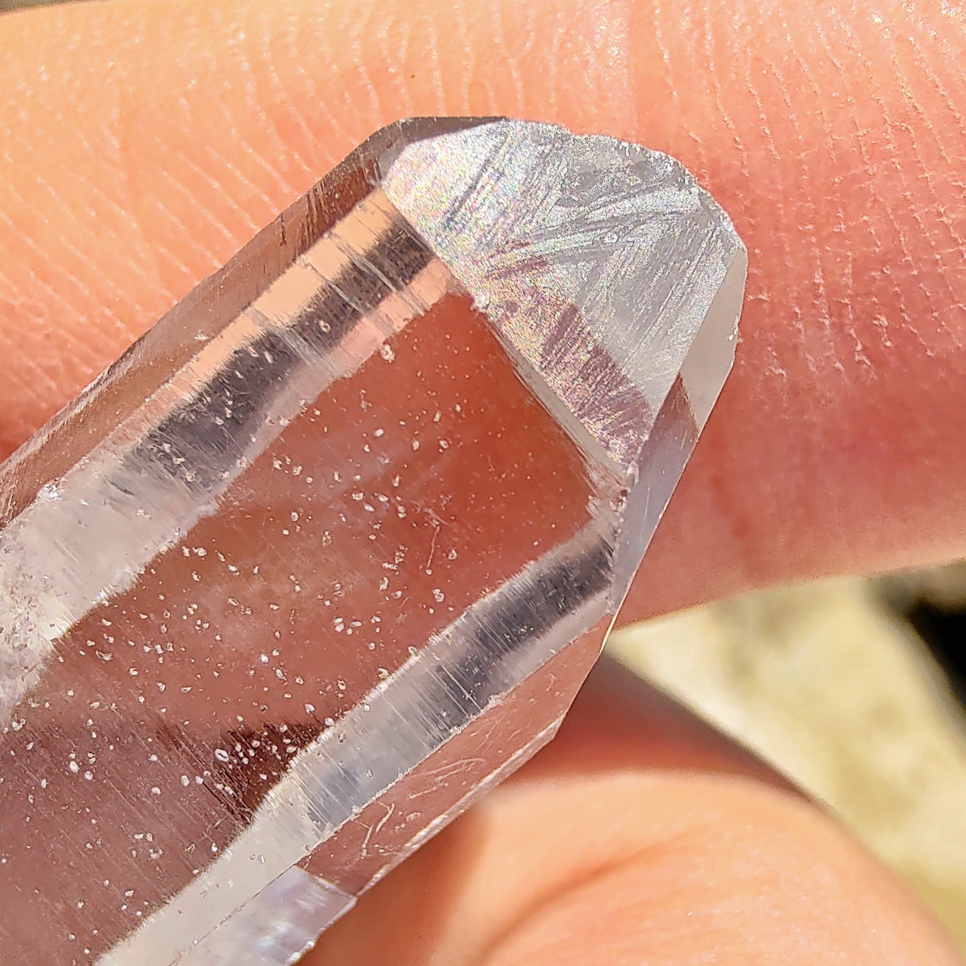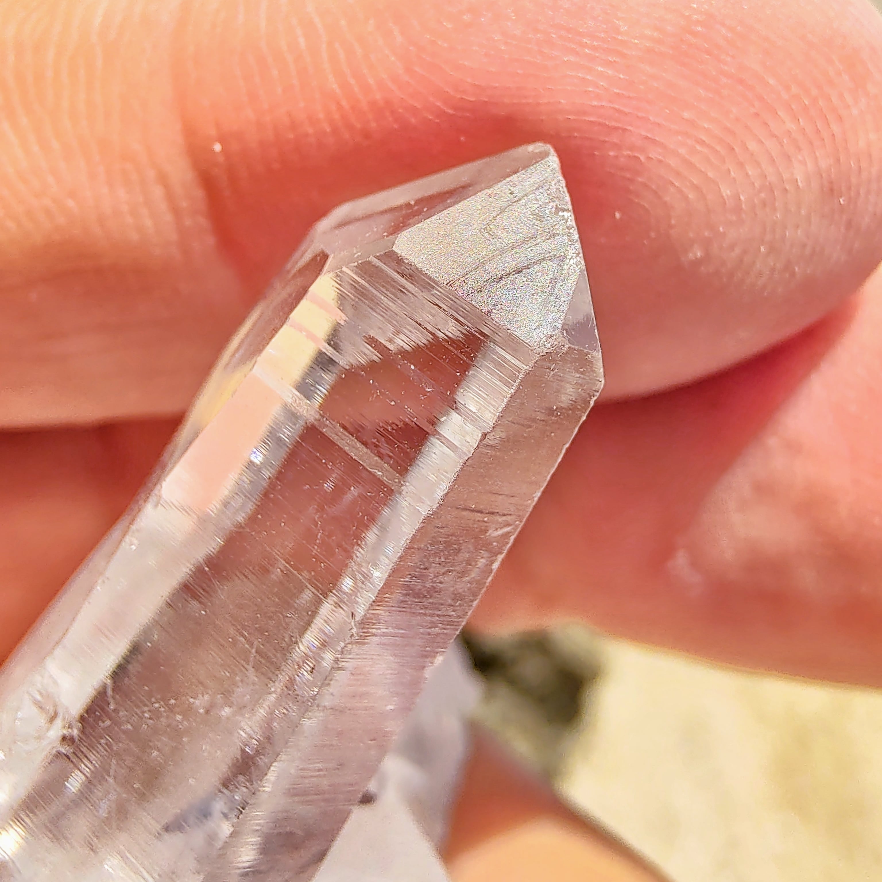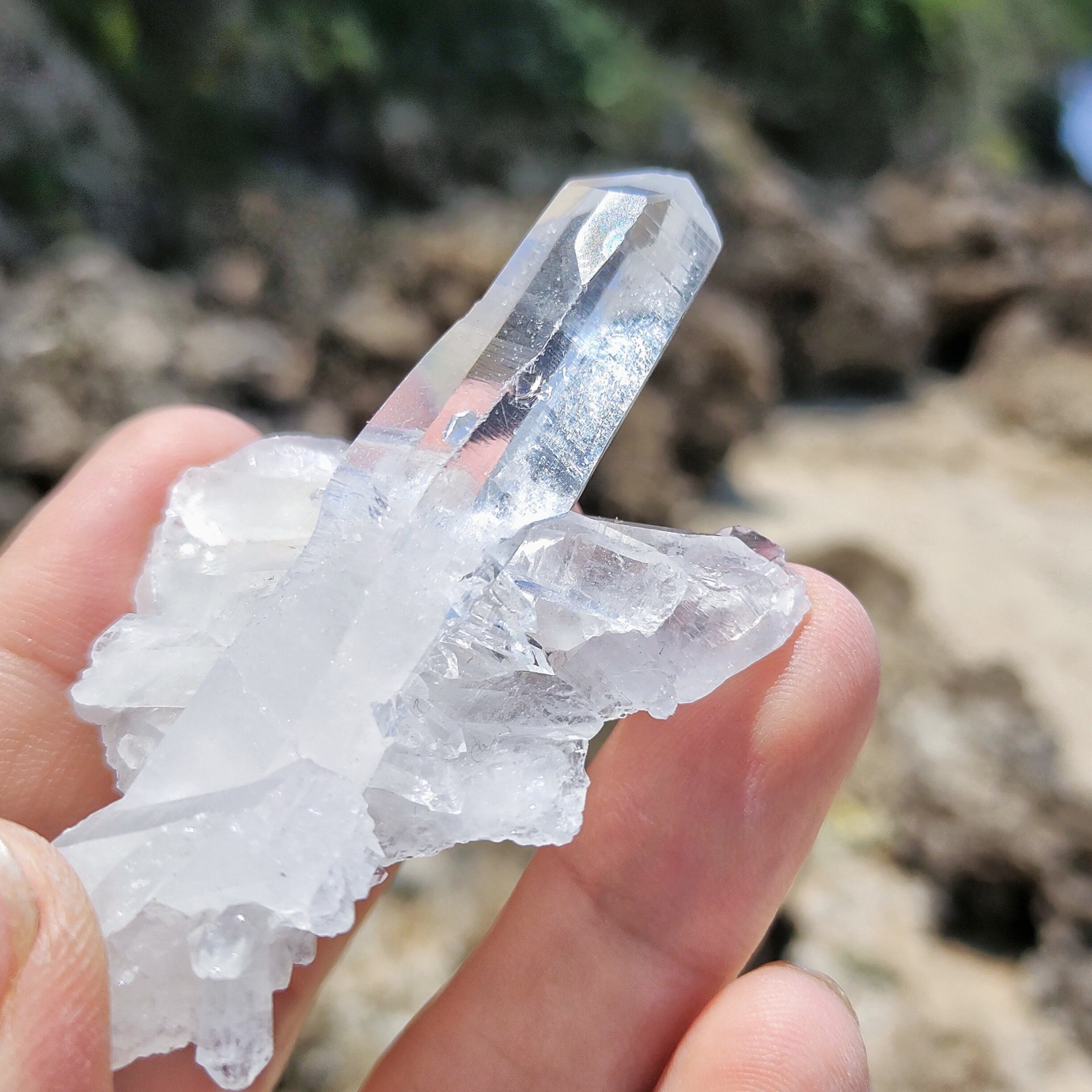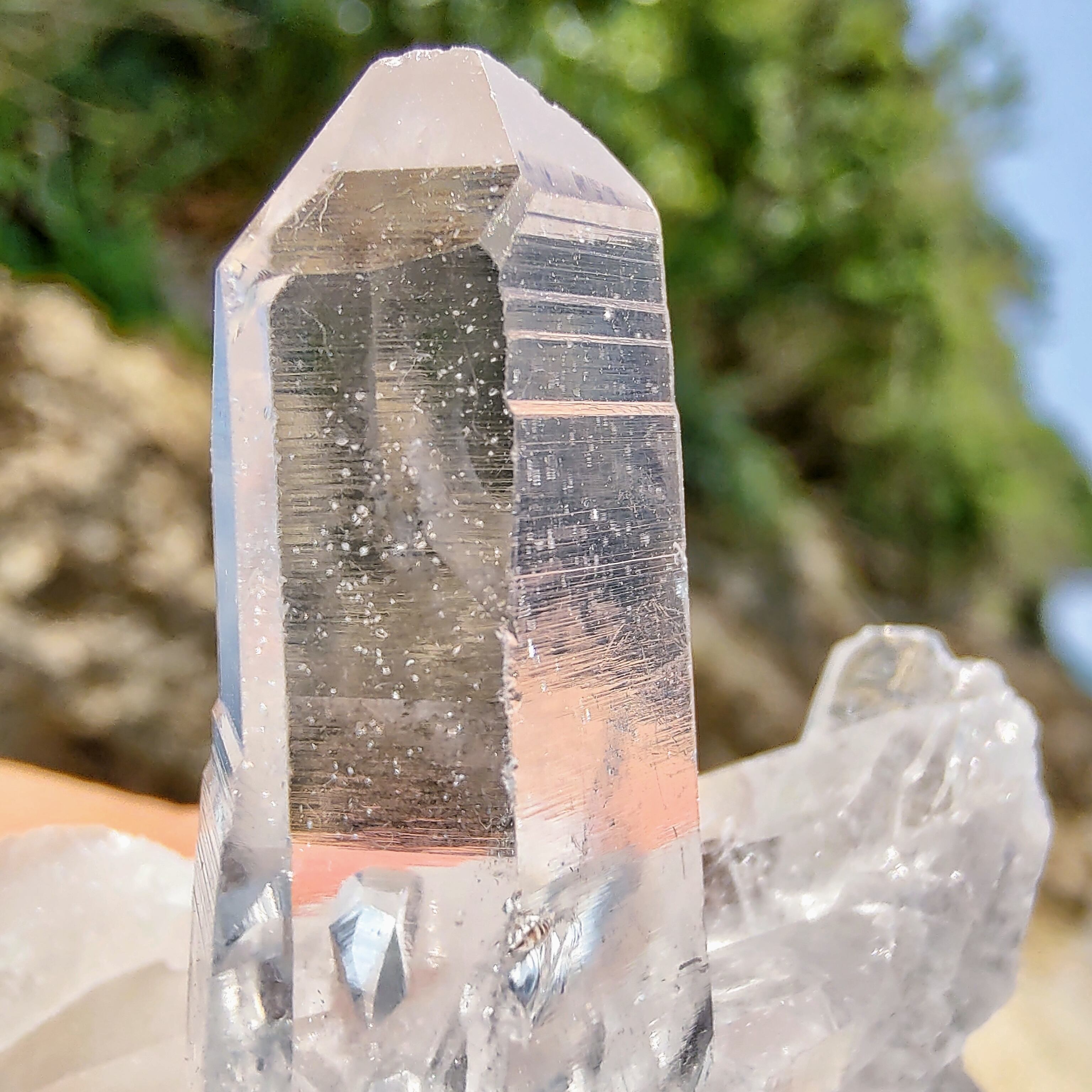 透明度高くて希少なレコードキーパーのクラスターです。锥面に三角形の模様がはっきりと見えるもので、希少な不可思議な構成される美しい幾何学的パターンを持っているようです。石中石の特徴もある、素晴らしいクォーツだと思います。