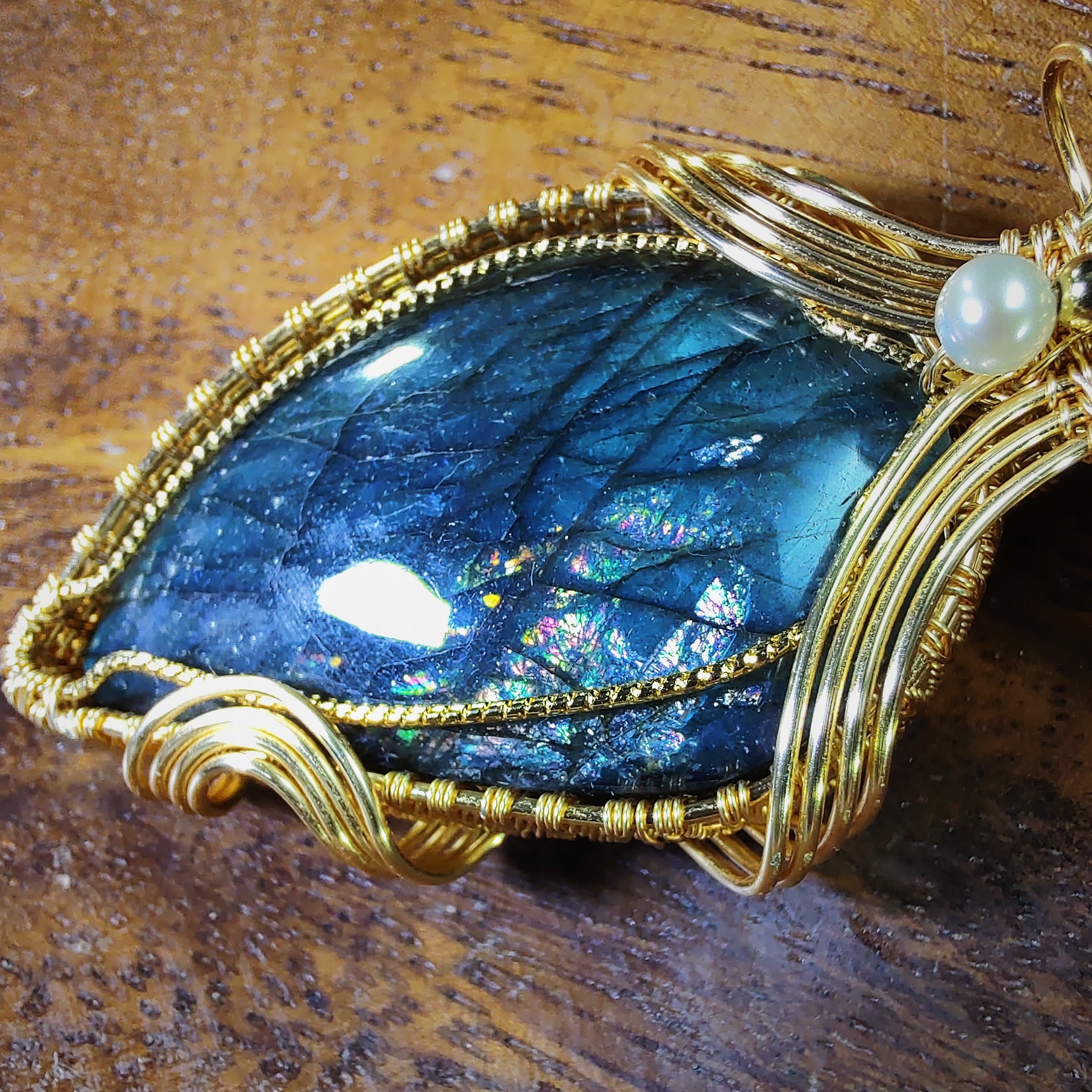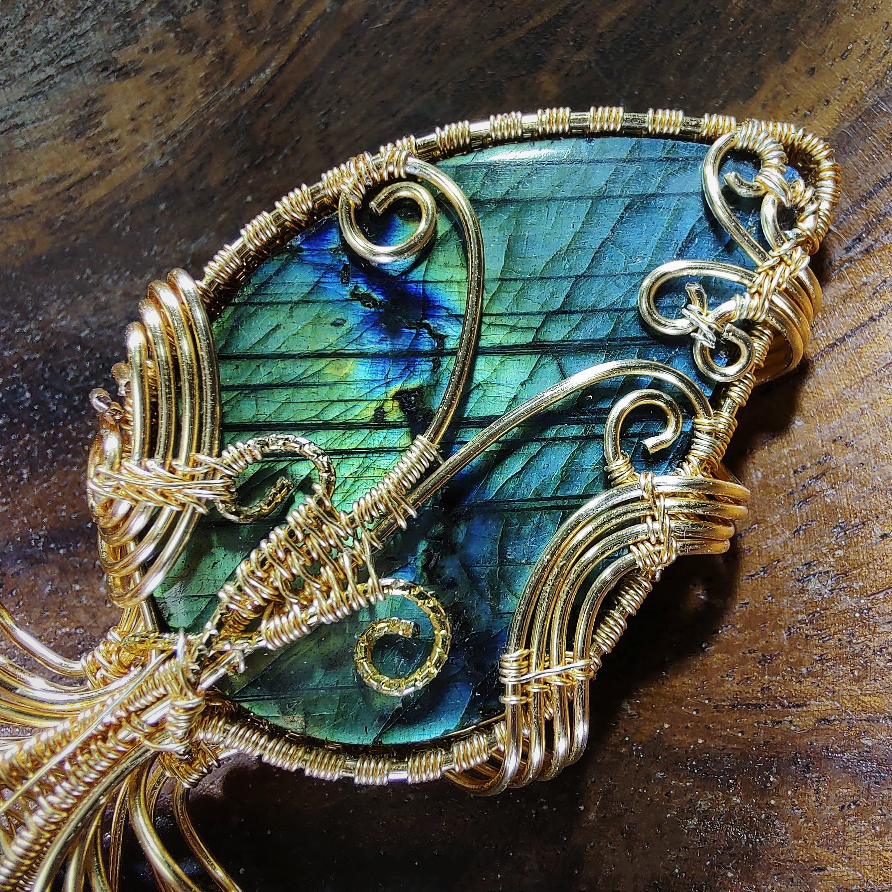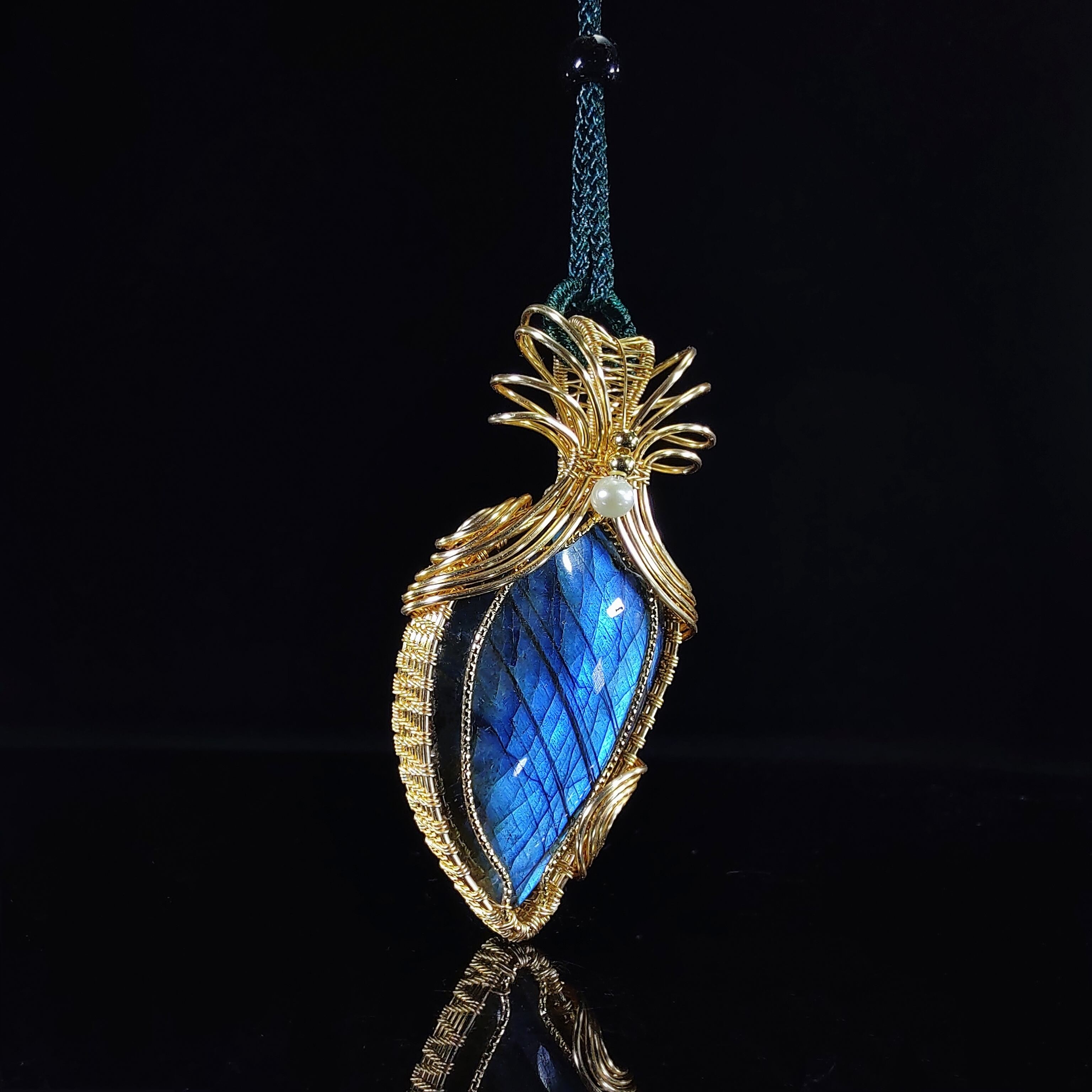 ◆潜在能力◆創造力◆チャレンジサポート◆ラブラドライトのワイヤーアート K00563 ペンダント 紐付き