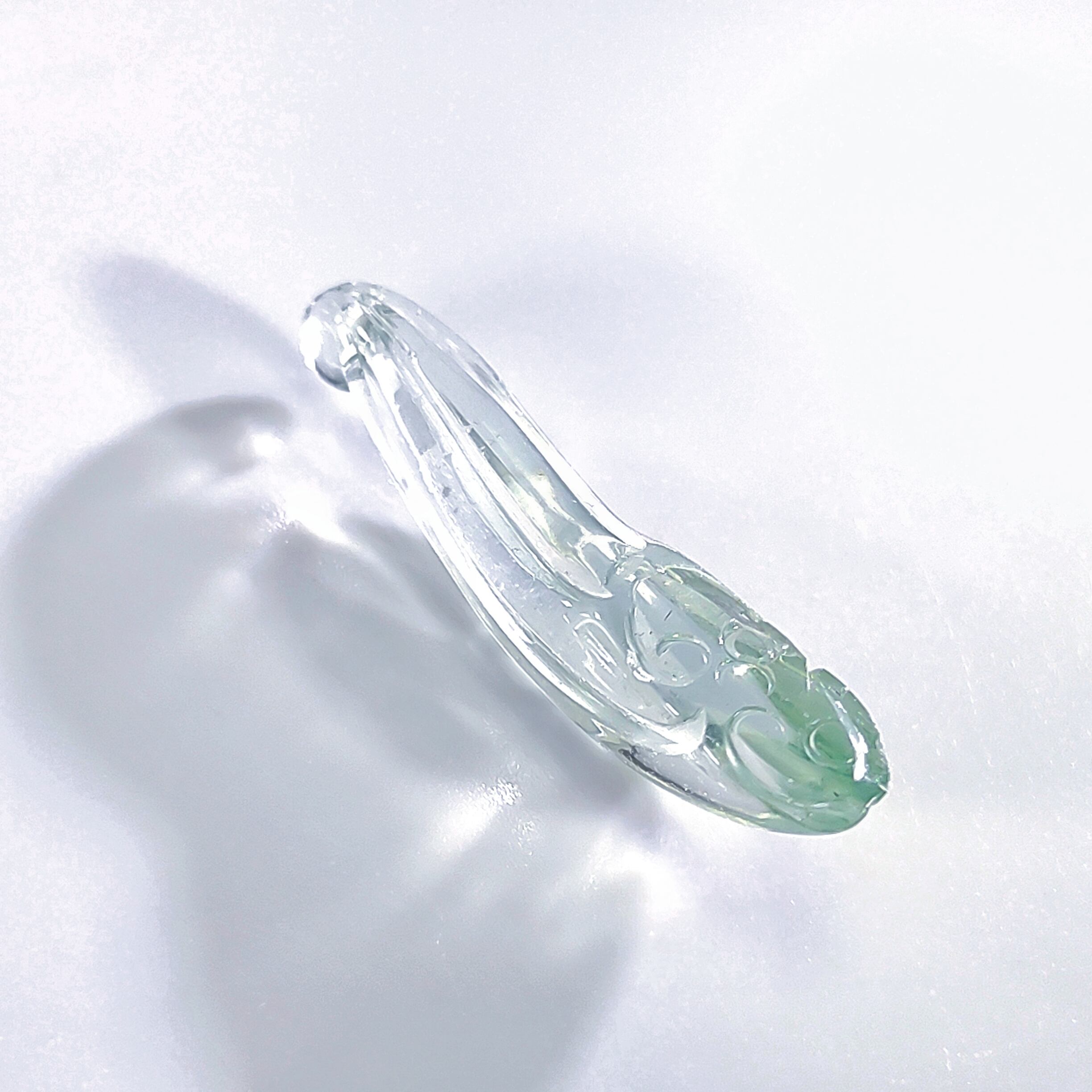 タンザニア・アル―シャ産緑のアル―シャサンストーンで、今大人気の天然石です。宝石質で透明感抜群が入っていて知的な感じを醸し出してくれていって、エネルギーの非常に強いです。如意の彫りが深く精巧で美しい逸品です。とても希少な珍しく美しいです。色合いがらも非常に景色の良い標本です。