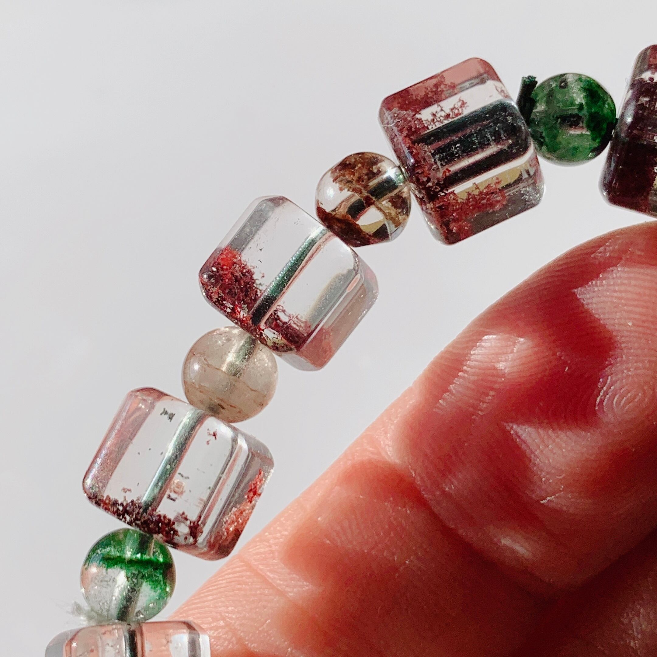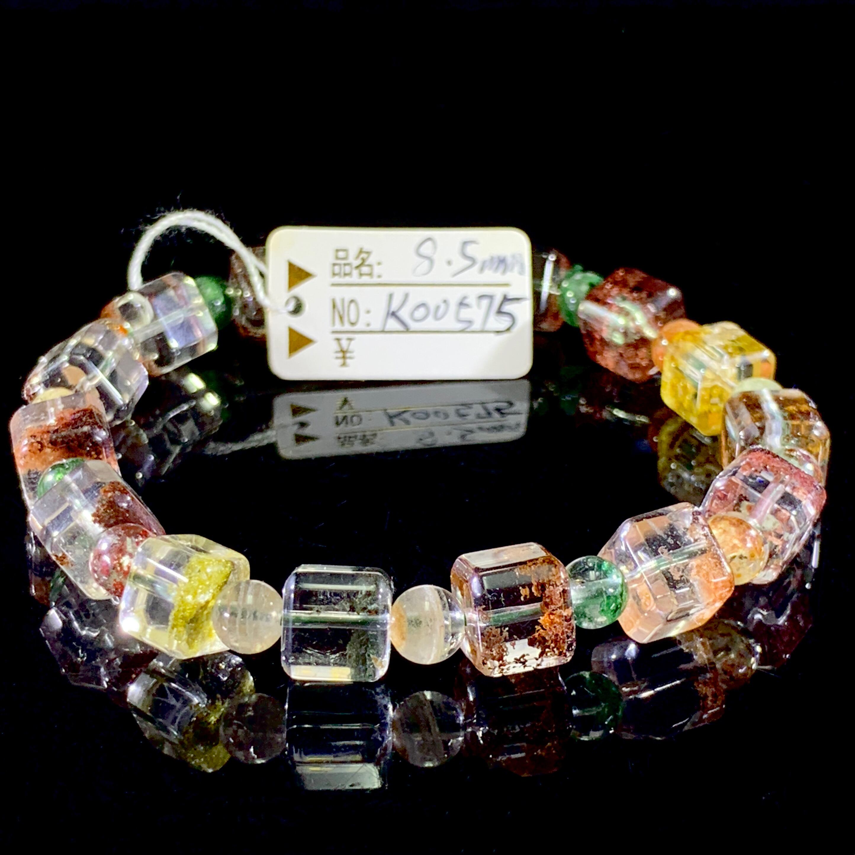 ◆超美品◆透明抜群◆ガーデンクォーツ◆キューブ◆庭園水晶 8.5mm K00575 天然石ブレスレット パワーストーンブレスレット