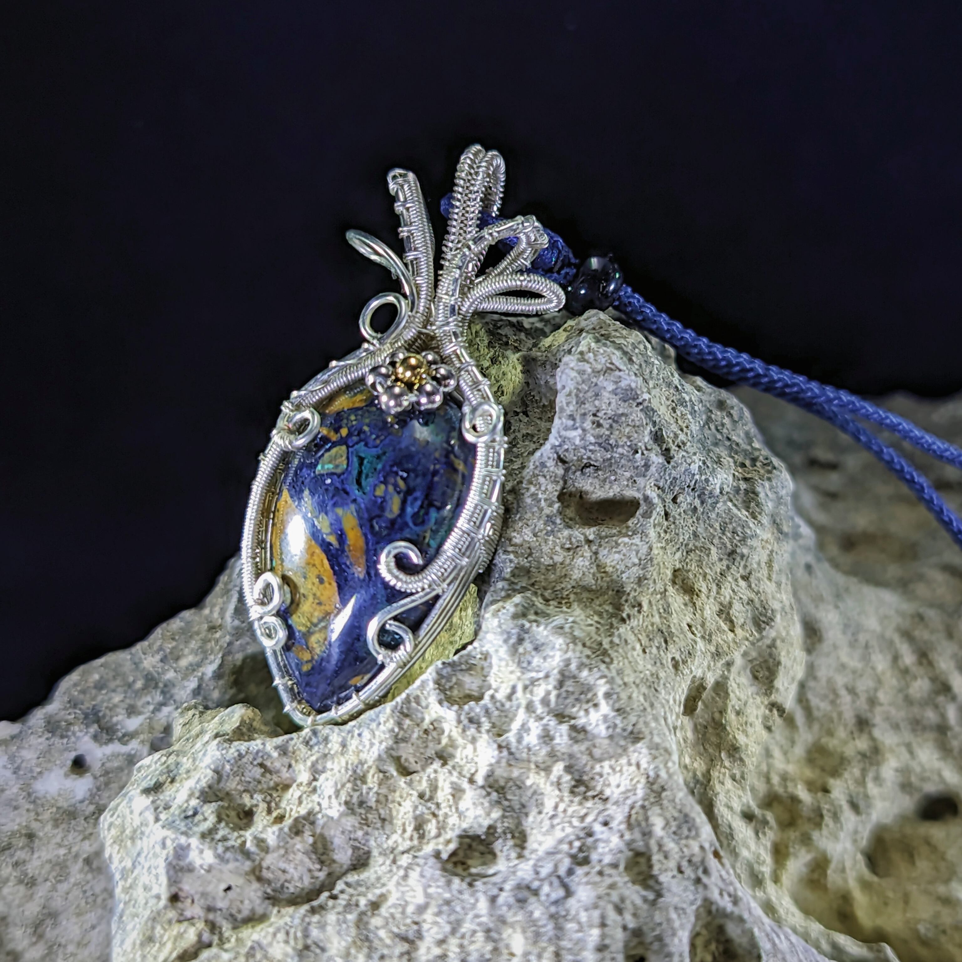 ◆濃い目◆ アズライトマラカイト/ アズロマラカイト/ 藍銅鉱 ワイヤーアート ペンダントトップ K00595 アズロマラカイト