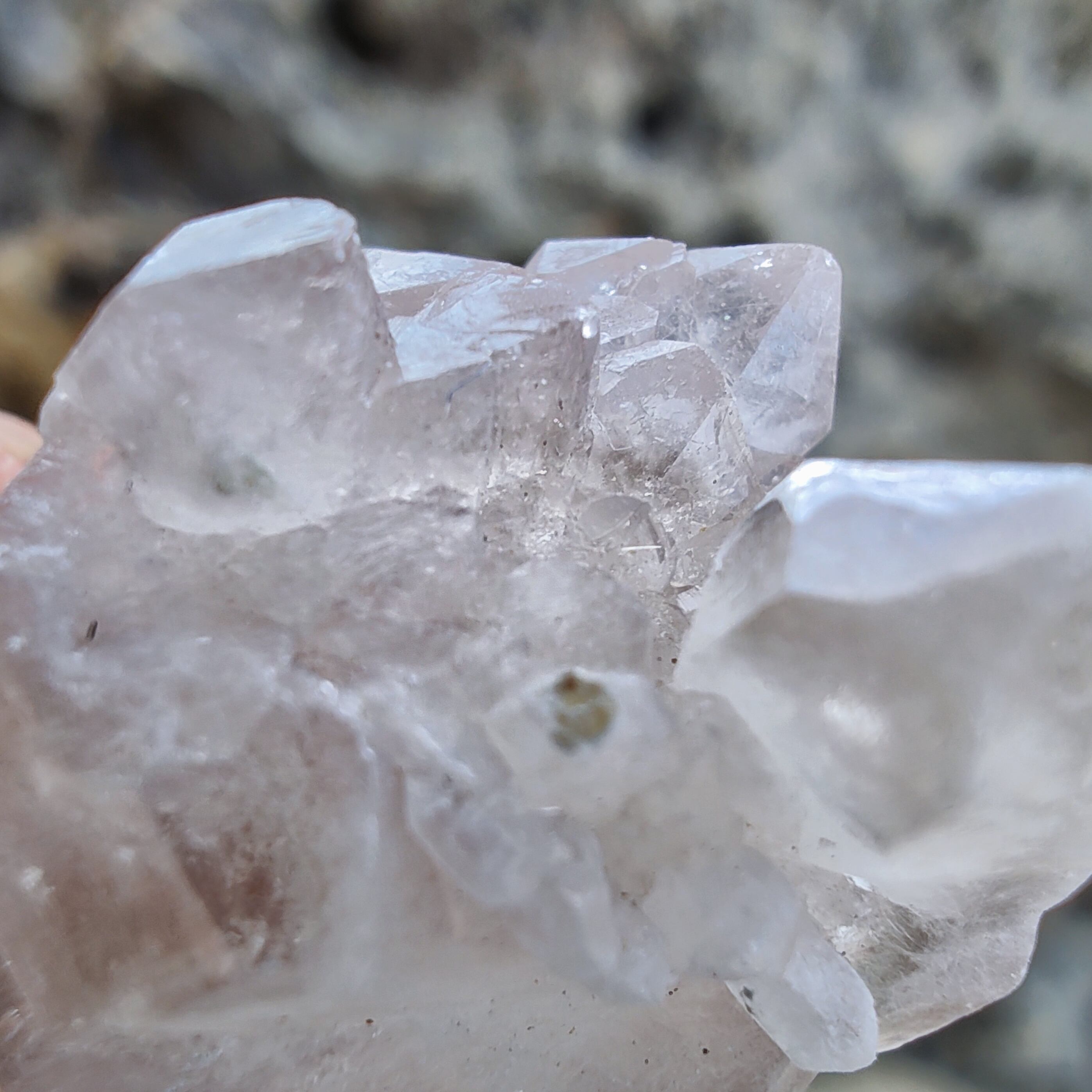 ゴツゴツした表面と自然が織りなした形状は見ていて飽きることのない美しいエレスチャルクォーツです。こちらクォーツはダブルターミネーテッドがたくさん組み合わせられて一つクラスターになった、雲母と鉄鉱物の特徴もあります。非常に希少です。